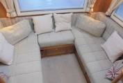 An extremely spacious rear lounge layout. The rear lounge forms the sleeping area with a double bed arrangement.