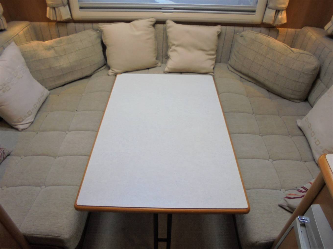 Living area: Heating and hot water are provided by a Truma system on gas or electric - All round blinds and fly-screens - Freestanding dining table for lounge – Swivel passenger seat - Electric hook up - Directional TV aerial - Carpet floor covering - Window blinds throughout - Internal and external storage spaces