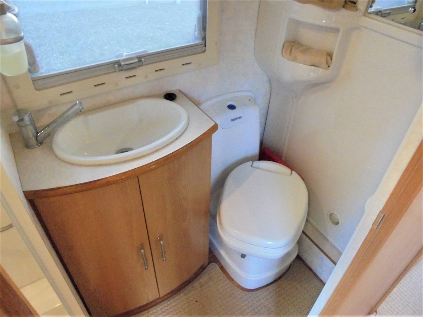 Washroom: Thetford swivel cassette toilet - Separate shower enclosure - Sink unit