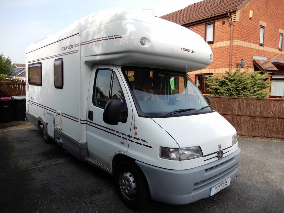 Welcome to the sale of this 2001 Compass Cruiser 740 which is based on a 2.8 Peugeot diesel with a 5 speed manual gearbox. This motorhome comes in general good condition for a vehicle of its age with few external marks which have all been included in the additional photo file. The main feature is its very spacious rear U shape lounge area which is fantastic for seating all friends and family. This area also makes up into a large double bed and could even be used as two single beds. Moving forwards into your kitchen area, you have a sink with taps, full oven with 4 burner gas hob, 3 way fridge and storage space. Just across for your kitchen you have your washroom which features a sink with taps, shower and a toilet cassette. The final of your 4 berths are catered for in the overcab bed area. For more information or the extended photo file please call or email.