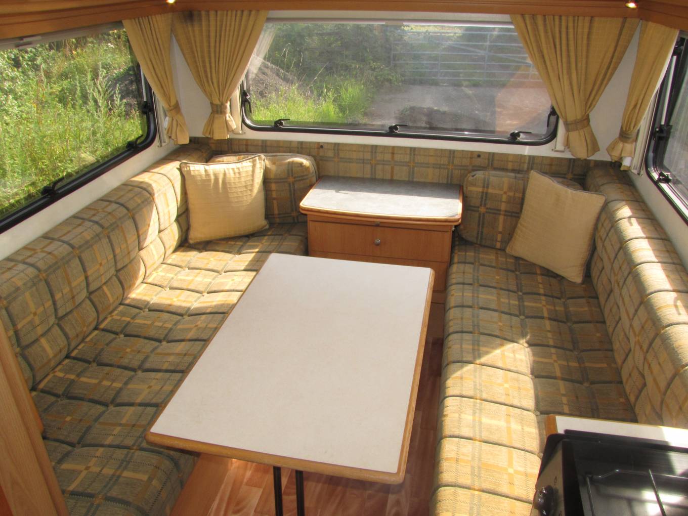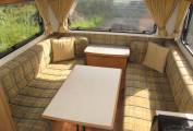 This Compass features the ever-popular rear U-shape lounge layout. The lounge has triple aspect windows making it a lovely light and airy place to relax after a day out seeing the local sites. Pop up the freestanding dining table, you also have a middle centre piece that can be removed this folds out to an extendable table top and storage, then once your done pop it back out put it away and you have a large U-shaped lounge again, you have an ideal and spacious spot to enjoy your meals. At night-time the sofas quickly and easily convert into a good size double bed.