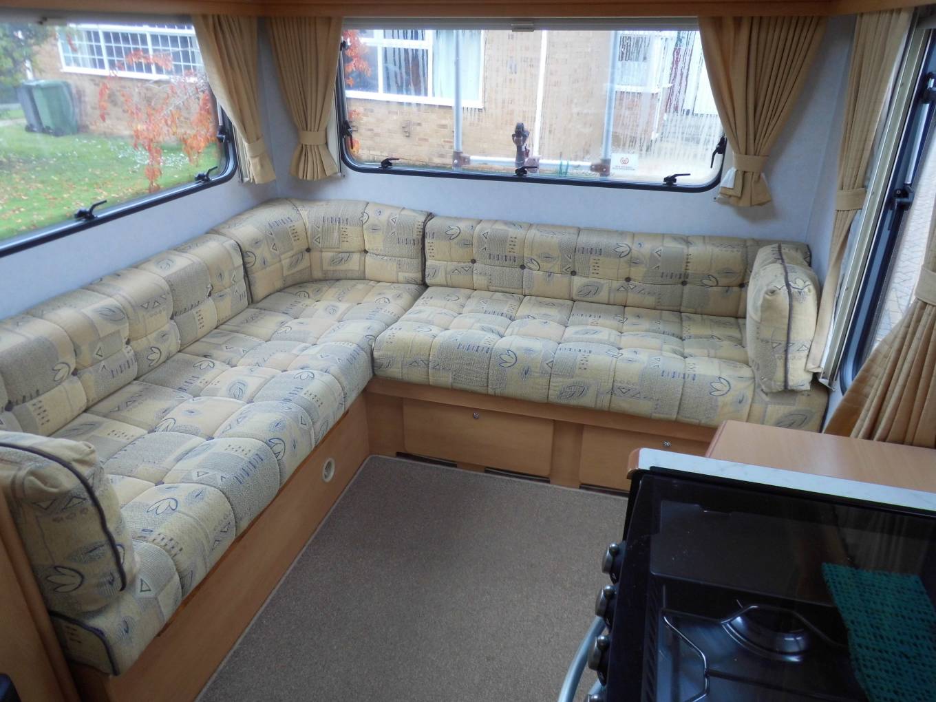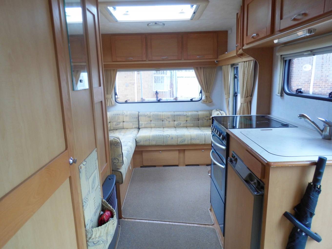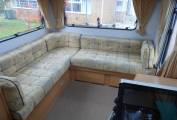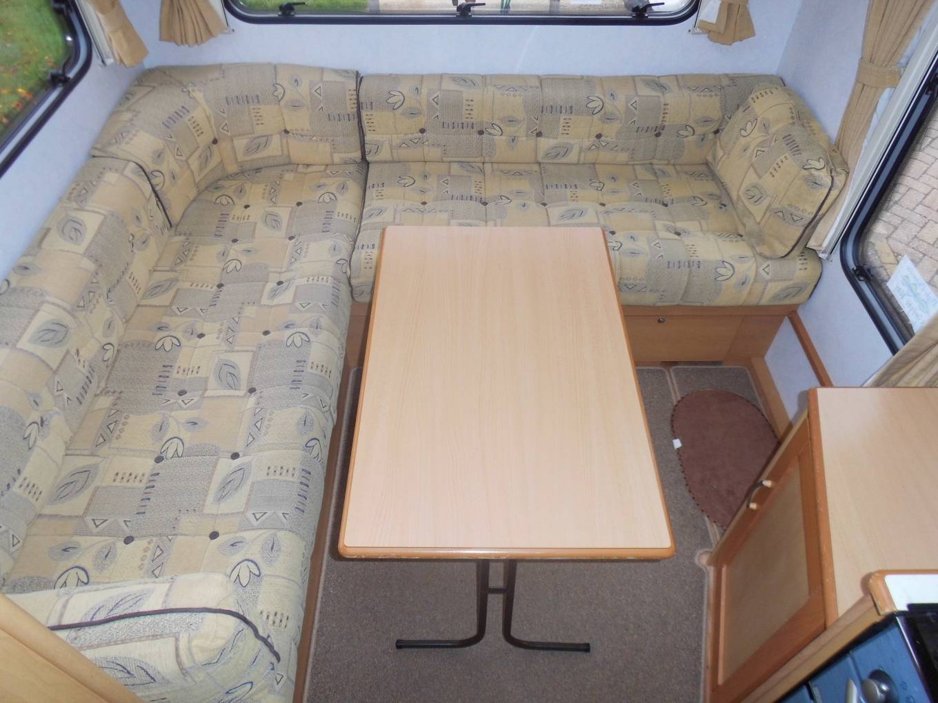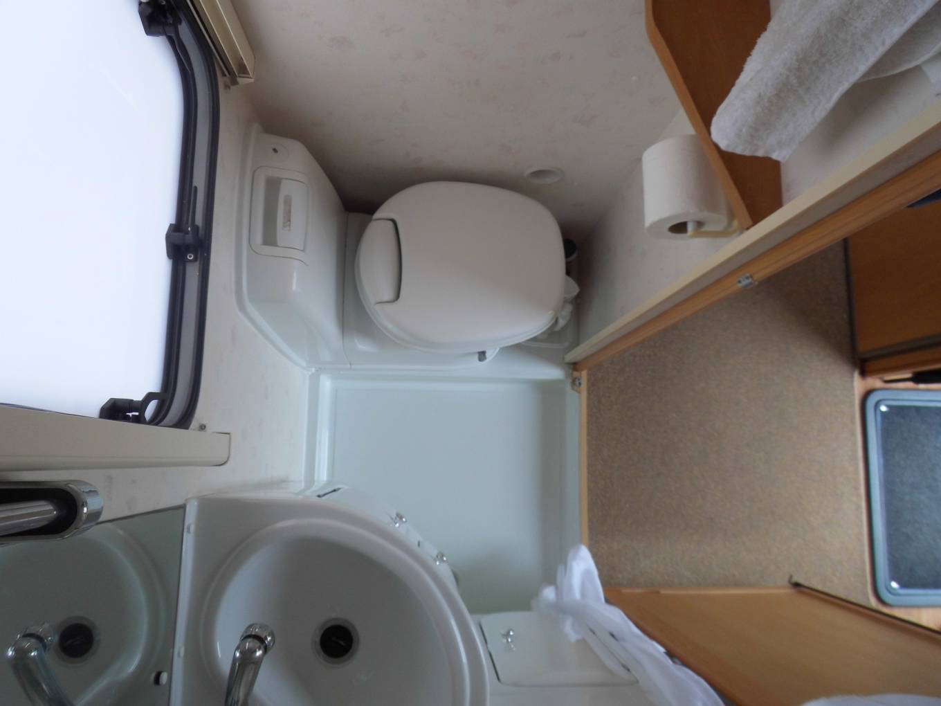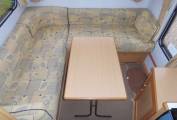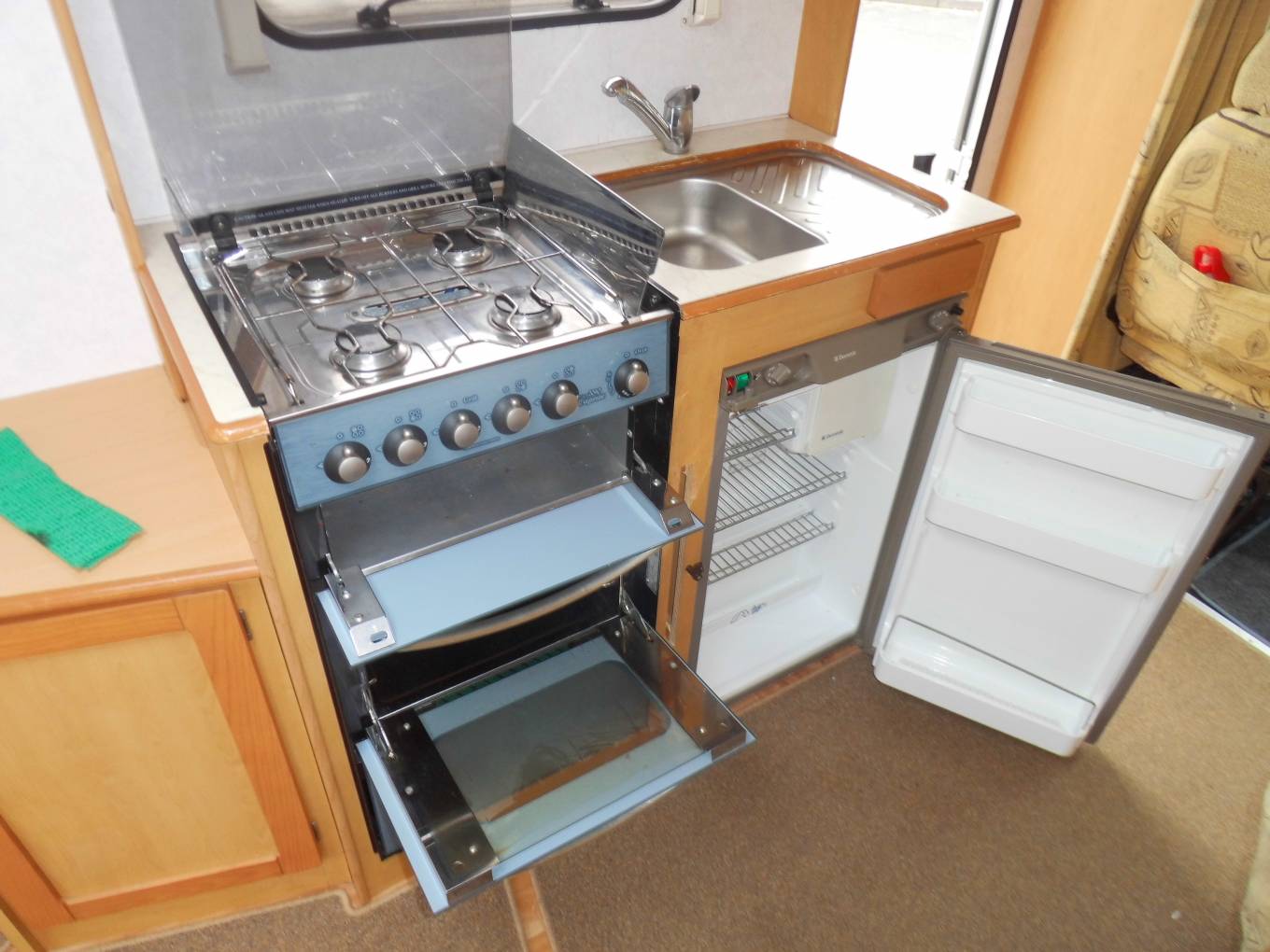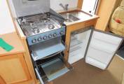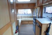 In the kitchen area you have an oven with a grill, a 4 gas burner hob, a 3 way fridge freezer, a sink and tap and plenty of cupboard and drawer space so you have no excuses for not being able to rustle up a lovely meal to enjoy in the comfort and privacy of your own motorhome.