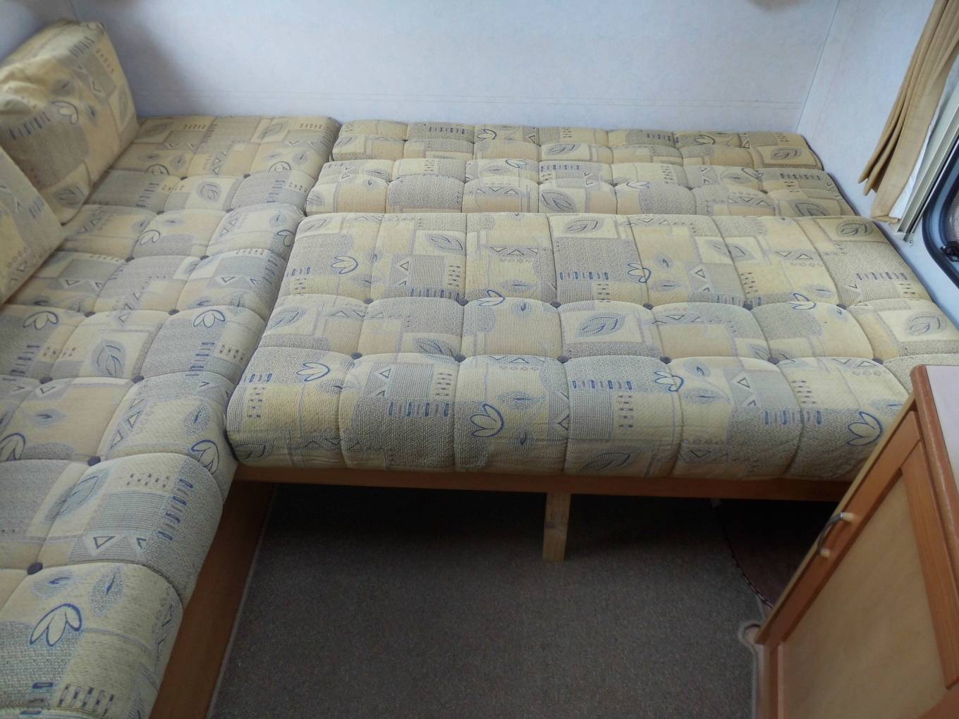 It sleeps 4 people in comfort. There is a large overcab bed and the L shape lounge also makes up in to a double.