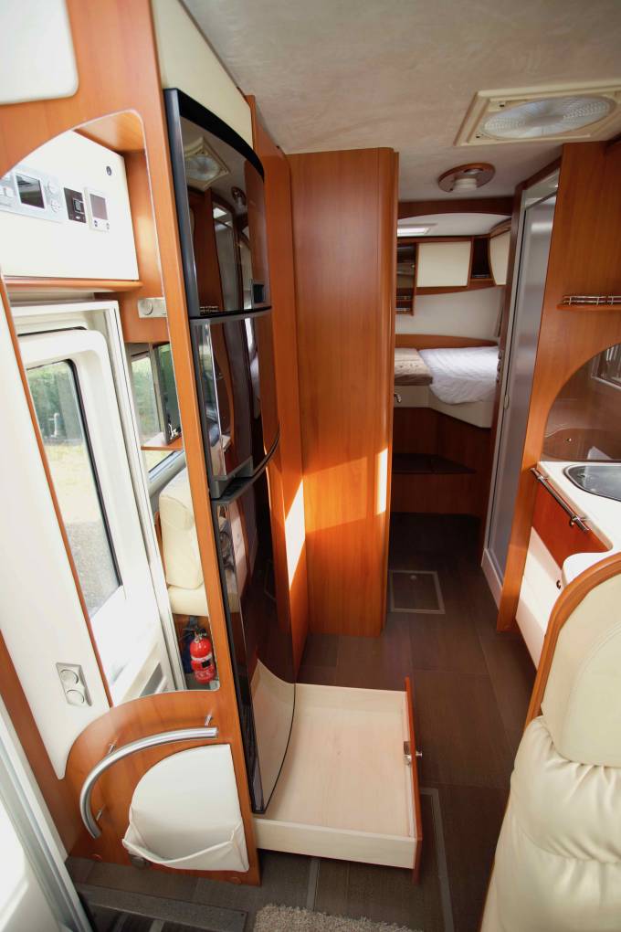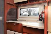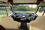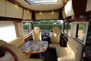 Credo package basic – Electric front roller blind. Credo starter package 2 – Panoramic Heki roof light in lounge, Electrical power package 2: 2 x 160aH AGM batteries, combination 100 A battery charger with mains pre-selection, sine wave inverter from 12v to 230v, 4000 W peak and 2000 watt continuous output with mains failure compensation; engine heat exchanger for living area.