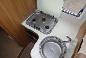 As you step in to the motorhome you immediately see how well kept this van is with full hab check history along with full service history. The living area is spacious with seating for 6 around the table that has a front to back and side to side slide action to allow easy access around it. There is good storage options through out the motorhome including 3 good sized overhead lockers in the living area. With a tv/dvd player and satellite system there are many options for those nights in. The kitchen is fitted out with a 3 burner hob including extractor fan, a oven/grill and a good sized fridge with separate freezer.