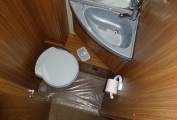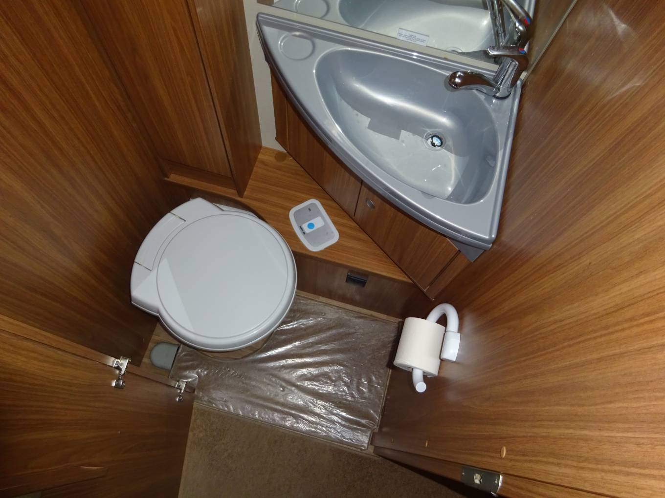In the bedroom we find a large island bed with good storage above, beneath and to the sides. The shower ingeniously fits in to the corner allowing for extra space, when not in use, in the bedroom. There is also a 2nd tv/dvd player in the bedroom.