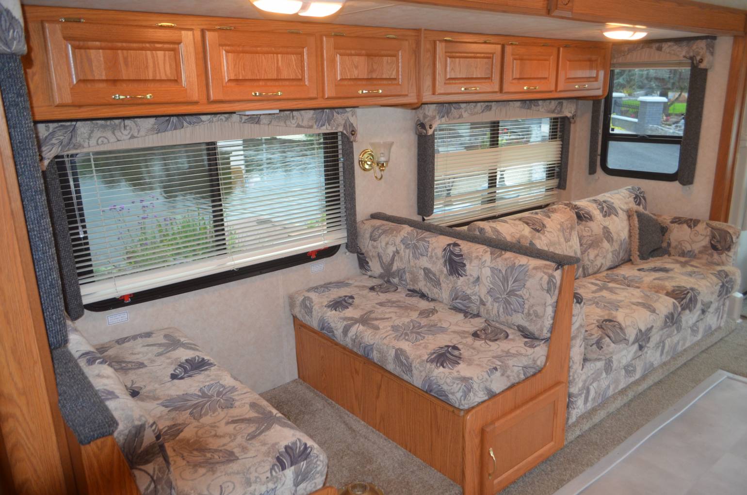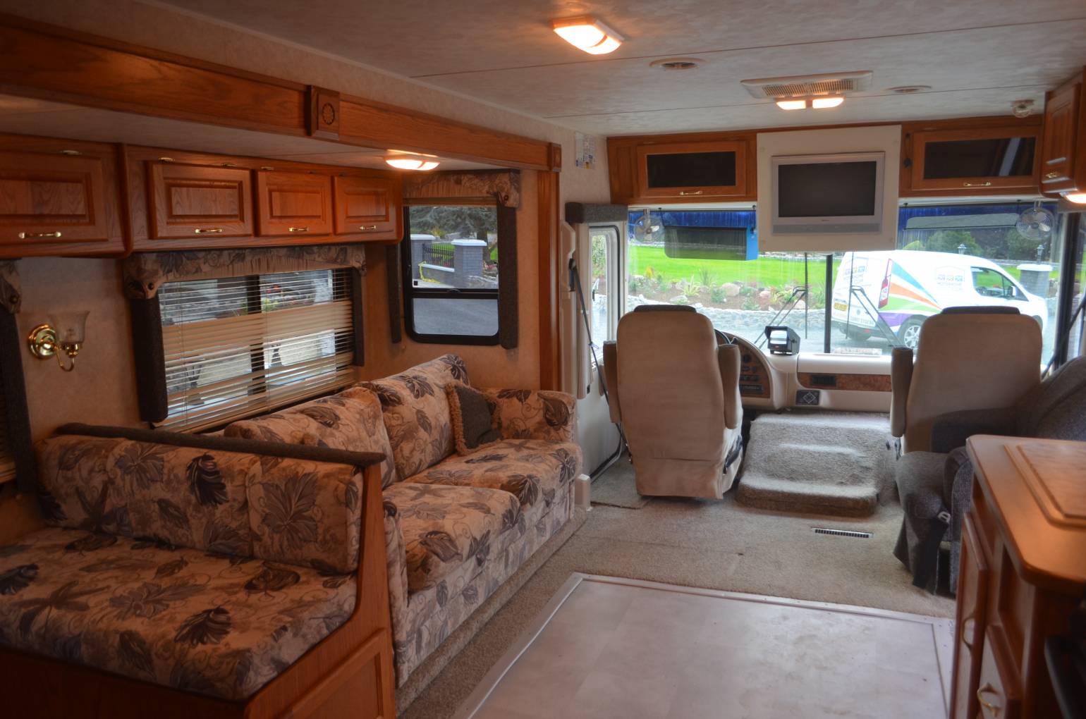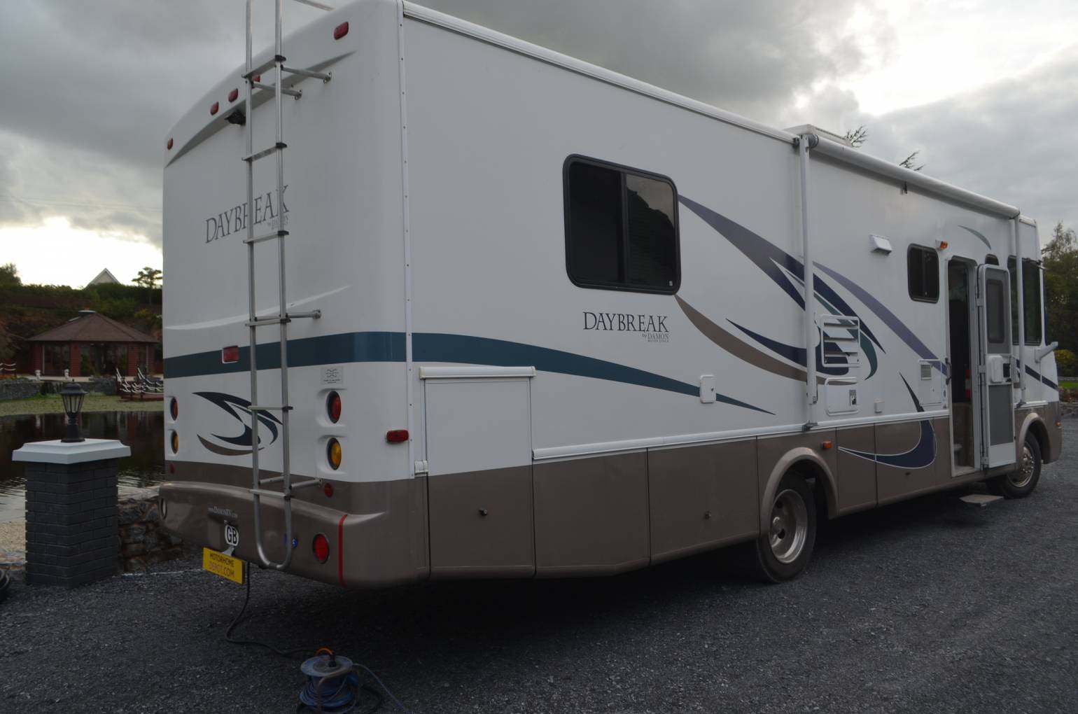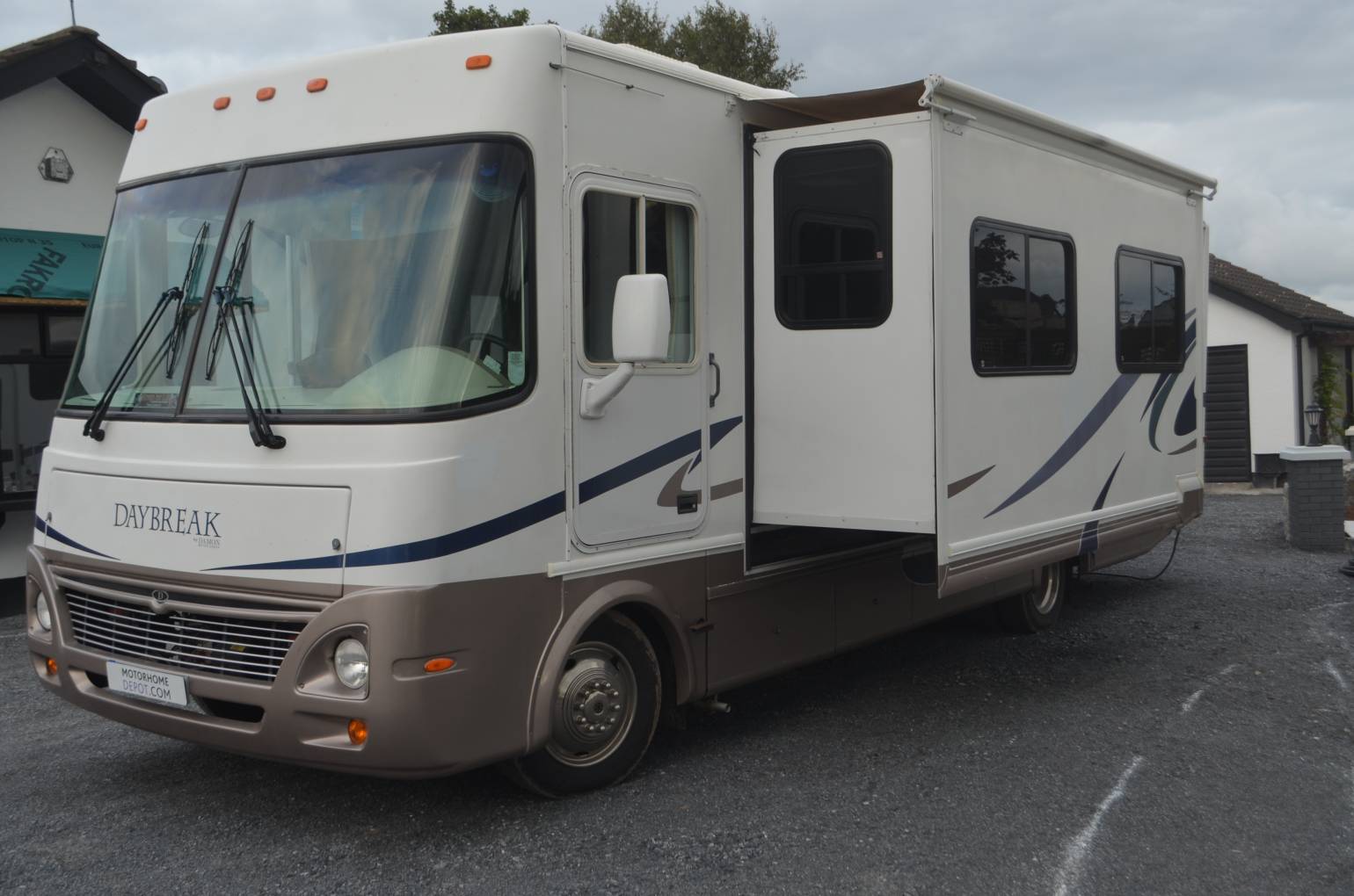2007 Damon Daybreak 3062W. Perhaps the best known American RV over here in the UK. Based on the 6.5l diesel Workhorse chassis with automatic gearbox. Damon produce some of the best quality, most affordable RVs around. With just over 11,000 miles on the clock this particular Damon represents great value for money and is in excellent condition. At just over 9.6m this is one of the smallest units Damon produce but with that big slide out extended small is not the word that springs to mind. Amazing living space which could seat ten people comfortably. Three armchairs, a three seater sofa and a double dinette offer a variety of eating, sleeping and dining options. There are seven travelling belts in total and six sleeping places. You could possibly stretch to seven sleeping places if you sleep three children in the sofa bed. The most luxurious sleeping places are reserved for the occupants of the rear bedroom which sits just behind a very spacious washroom. Kitchen is in the middle of the living area and features a full sized fridge, oven, microwave and sink. Equipment levels as you would expect in a Damon are superb. Hydraulic levelling jacks, on board generator, awning, habitation air con, satellite system, flat screen television, reverse camera, LPG tank, swivel seats, electric step and rear ladder. Plated at 7484KG, width is 2.5m and height is 3.56m. The owner of this RV will arrange an engine service and full MOT for the new owner. Delivery available throughout the UK and Ireland. Please contact us for our detailed image file of this vehicle. This vehicle is located close to our premises in Saintfield, Northern Ireland and is a UK registered 57 plate vehicle. There are no additional registration costs for mainland UK buyers. PLEASE CONTACT US FOR VIEWING DETAILS.