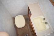 Rear of the kitchen is the bathroom with toilet and wash handbasin on on side and a large shower cubicle on the other including a small bath. Concertina doors both side block this area off.