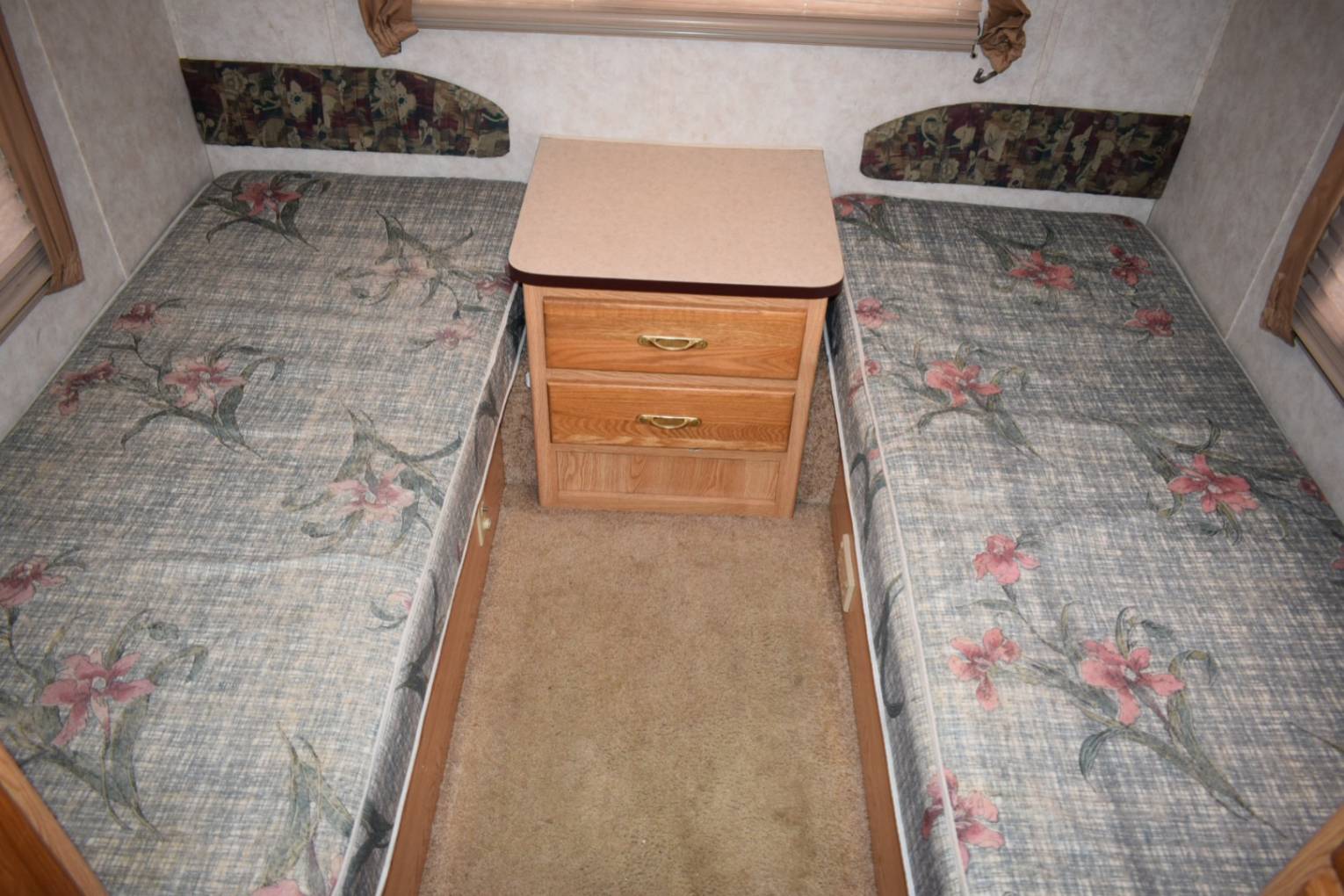 At the rear are two full sized fixed beds with a fitted safe beneath one.