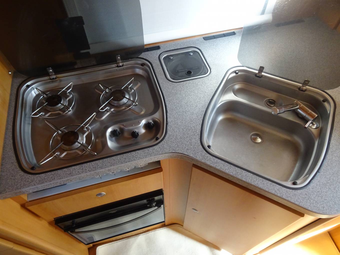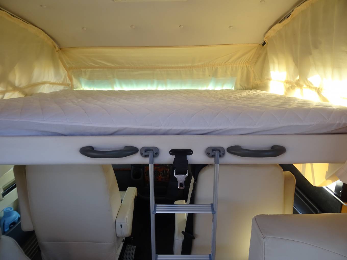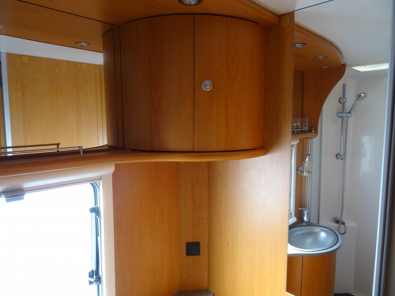 For sale - A great opportunity to own a quality german built A Class Dethleffs Globetrotter Esprit 2.8L tag axle Fiat Ducato based motorhome in lovely condition, which benefits from having had an MOT and Habitation report carried out as recent as February 2022. This impressive motorhome has a King-size fixed transverse bed at the rear with a new memory foam mattress recently fitted and a swivel bracket mounted TV. The bathroom door provides a partion for privacy, when friends or family are using the over-cab bed. The good sized washroom at the rear consists of a Thetford swivel toilet, stainless steel wash basin within a vanity unit and a seperate screened shower. Opposite we have a large wardrobe with two draws for your essential clothing items which, combined with the washroom, provides a rear on-suite facility. The kitchen is centrally positioned and is well equiped with a large Dometic 3-way fridge with seperate freezer, a three ring gas hob, a single bowl sink and a combined oven and grill, all in excellent condition. The lounge upholstery and captain seats are finished in cream leather providing a luxurious feel to the living area with seating for at least seven people, giving ample space for entertaining and watching TV. A good size fold-away table is available for meal times with two smaller tables that can be used for light snacks and drinks. Above the cabin a pull-down bed provides a large double, also with a new memory foam mattress, and with access via a small step ladder. The Esprit does not lack storage space, having a massive amount throughout with overhead airline style locker's, external locker's and a huge garage at the rear. Another great feature of this motorhome is the Alde underfloor heating system which ensures a nice comfortable living space on colder days. The cabin has sliding side windows, main window and side blinds, air-con, a jvc radio/cd player, a reversing camera and has a 2800cc engine with a 5-speed gear box. Externally the Esprit has an Omnistor side awning, a gas BBQ point, 240v plug point, retractable hook-up, a locker with two gas cylinders, a tow bar, further lockers for storage and the huge garage ideal for cycling and watersports equipment.
