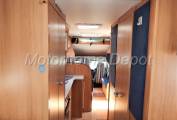 Moving rear is a large Hanging wardrobe situated just behind the Kitchen & opposite the bathroom. This consists of a Thetford Cassette Fresh Flush Swivel head toilet, sink with chrome mixer tap and a separate shower cubicle with perpsex doors to close.