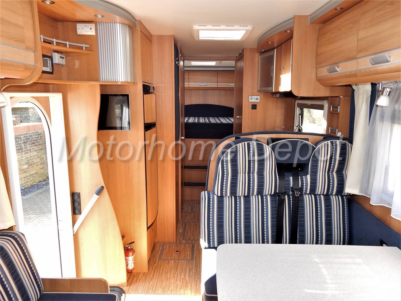 From one of Germanies finest motorhome builders the Dethleffs Advantage A7871 which benefits from twin floor construction to give great thermal qualities in wintering and superb storage between the floors. This fantastic family motorhome is based on the ever popular Fiat Ducato chassis with the 3000cc Diesel engine with a 6 speed manual gear box. Having only had 4 owners from new and covering 43220 miles, you can see this vehicle has obviously been well maintained and comes with a comprehensive service history & will come with a new MOT. The cab benefits from: Cruise Control; Pioneer Multi Media system with Bluetooth phone and music streaming; Waeco Reversing Screen; Climate Control Air Conditioning; Snooper Sat Nav; Electric Front Windows; Electric Heated Mirrors; Remis Blinds To front & Side Screens; Cup Holders.