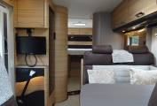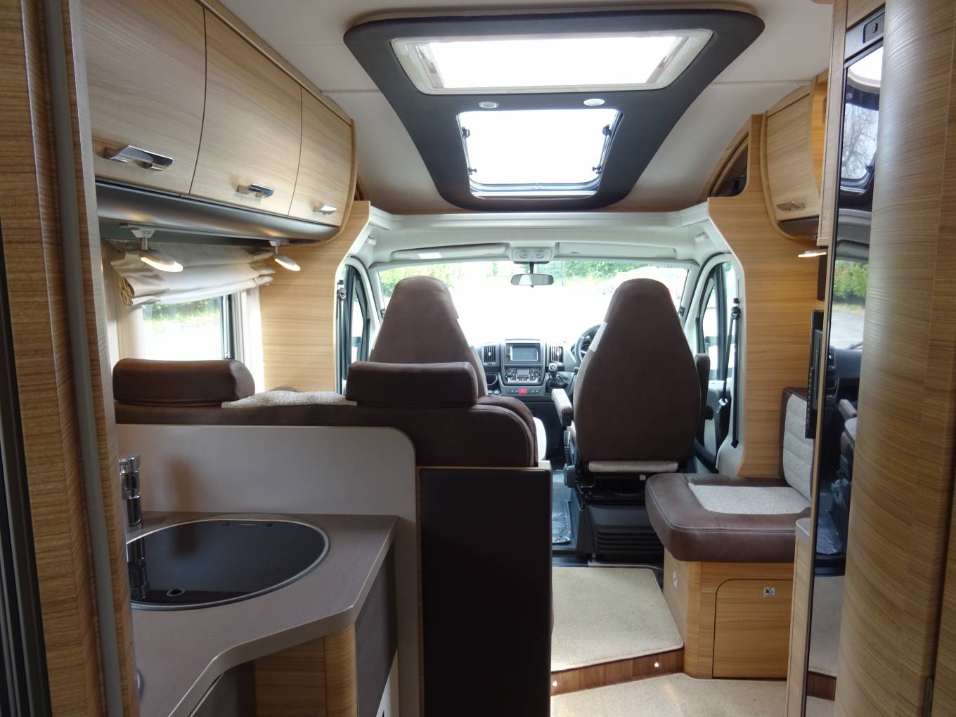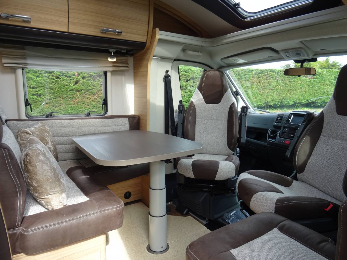 motorhome partially due to the large central rooflight. The lounge and dining area consisting of twin
