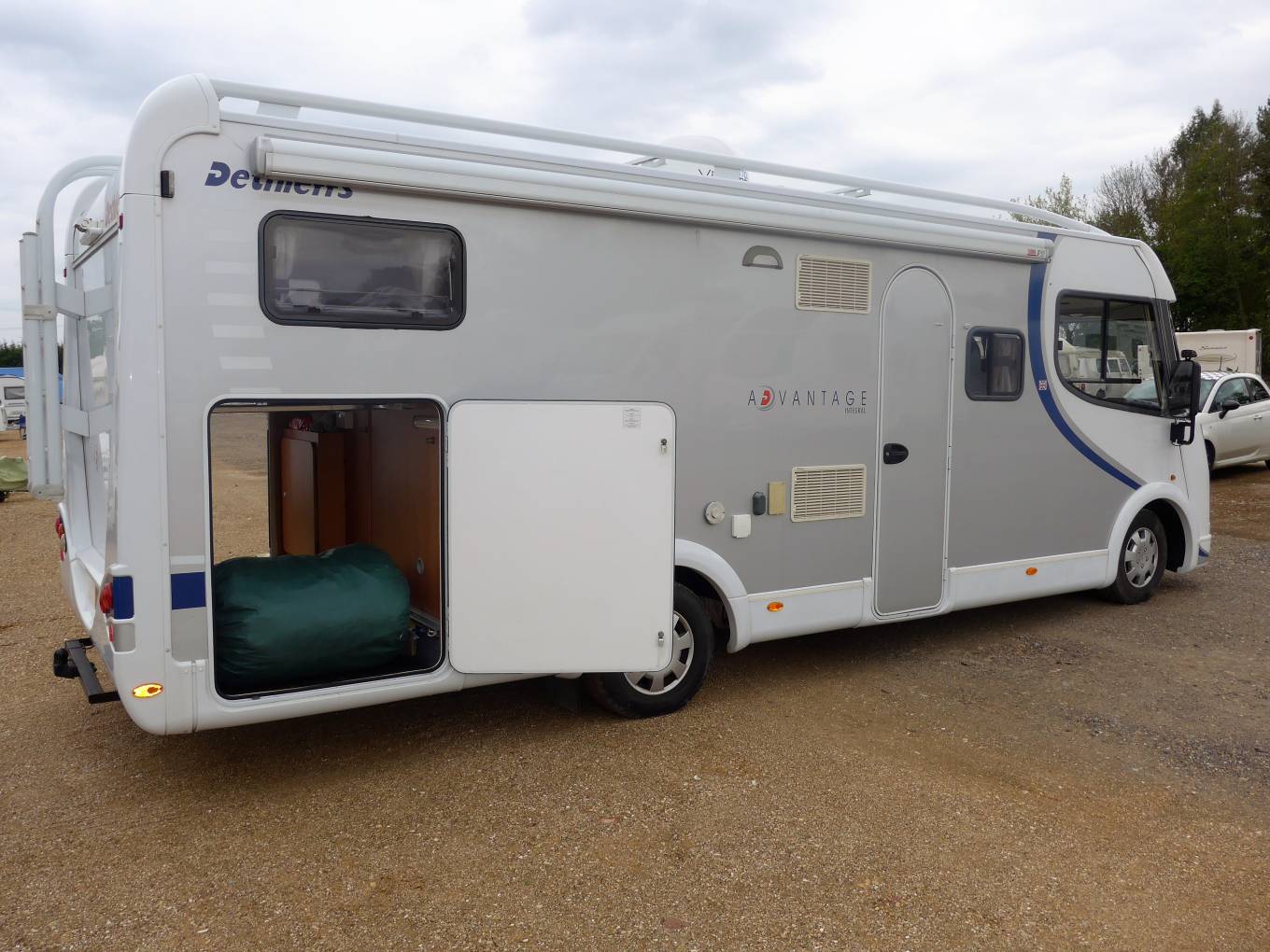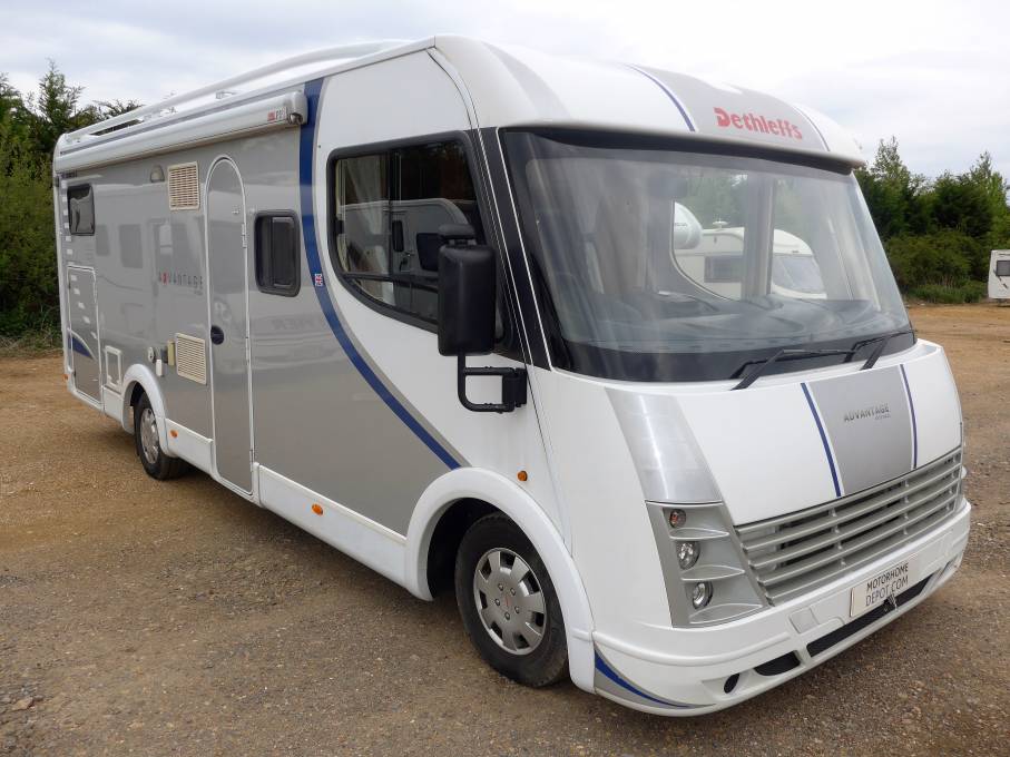 Dethleffs Advantage I 6871. 4 Berth Luxury German built A Class Motorhome with rear Fixed Bed, large Garage, Drop down bed over cab seats, Separate Shower . Low mileage, RHD, Upgrades include 3.0 litre Fiat Ducato Engine, Luxus pack, Titan Silver. 15 inch Alloy Wheels