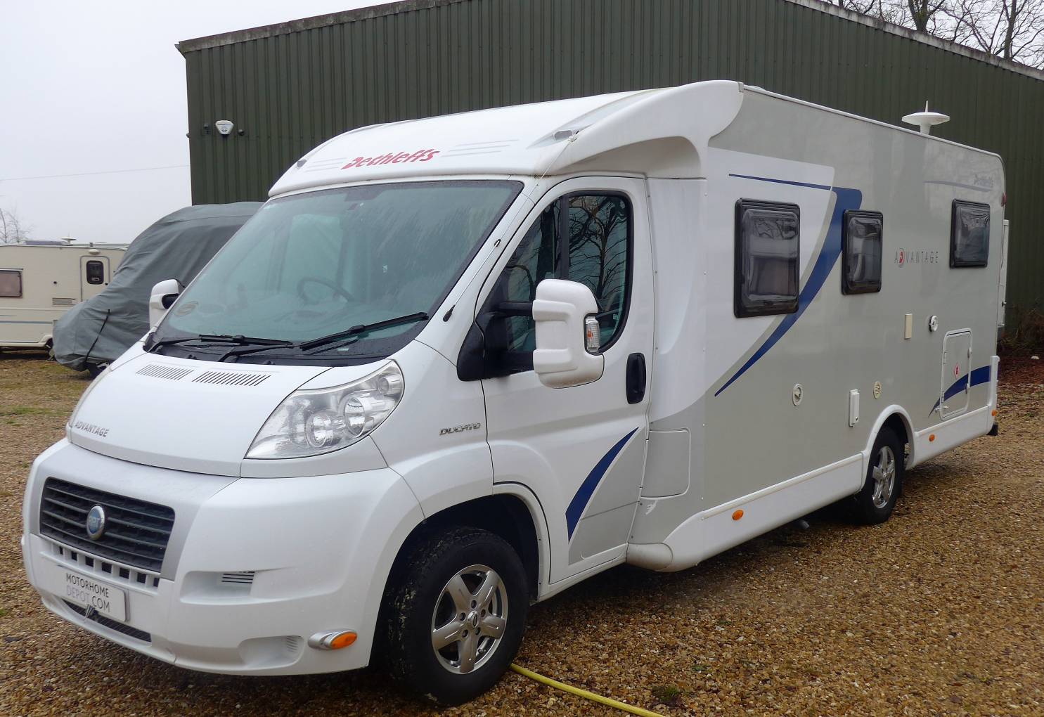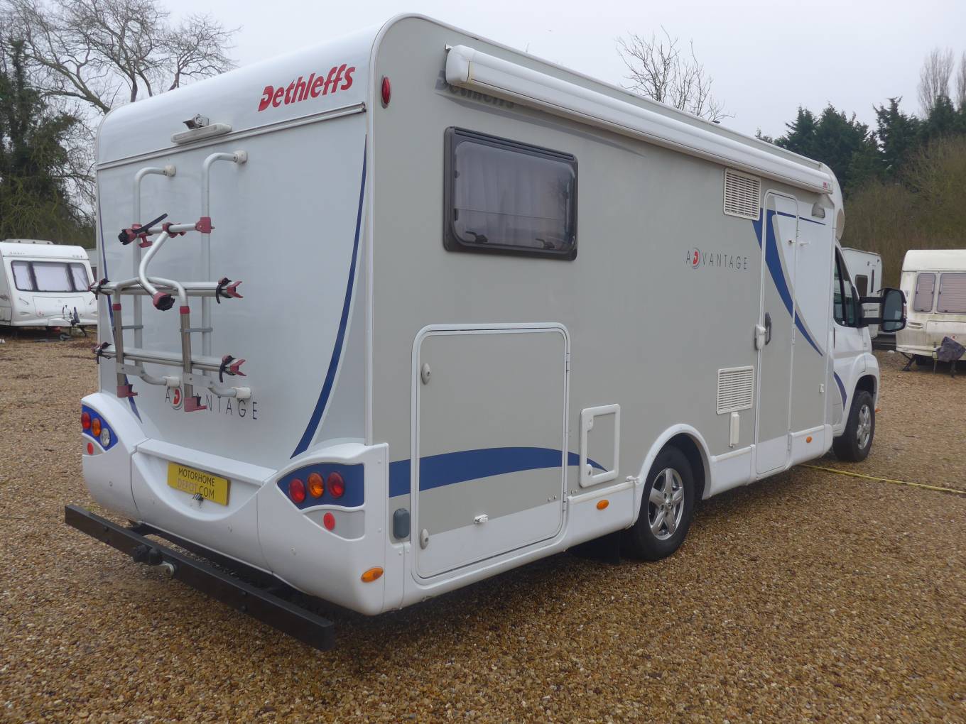 Dethleff’s Advantage T6571 Low Profile 4 Berth Fixed Rear Bed. Large Garage, separate shower cubical, 4 Belts, Solar Panel, Awning 2 TV’s. Satellite dish, Gas-LO refillable system. Cat 1 Alarm system, Cab Air-con, Tow bar, Bike Rack, alloy wheels & external BBQ & Shower points.