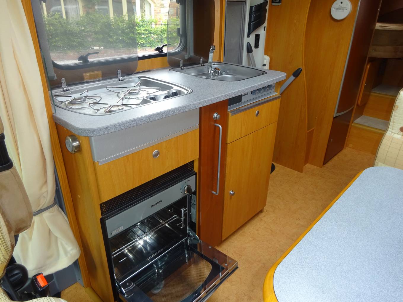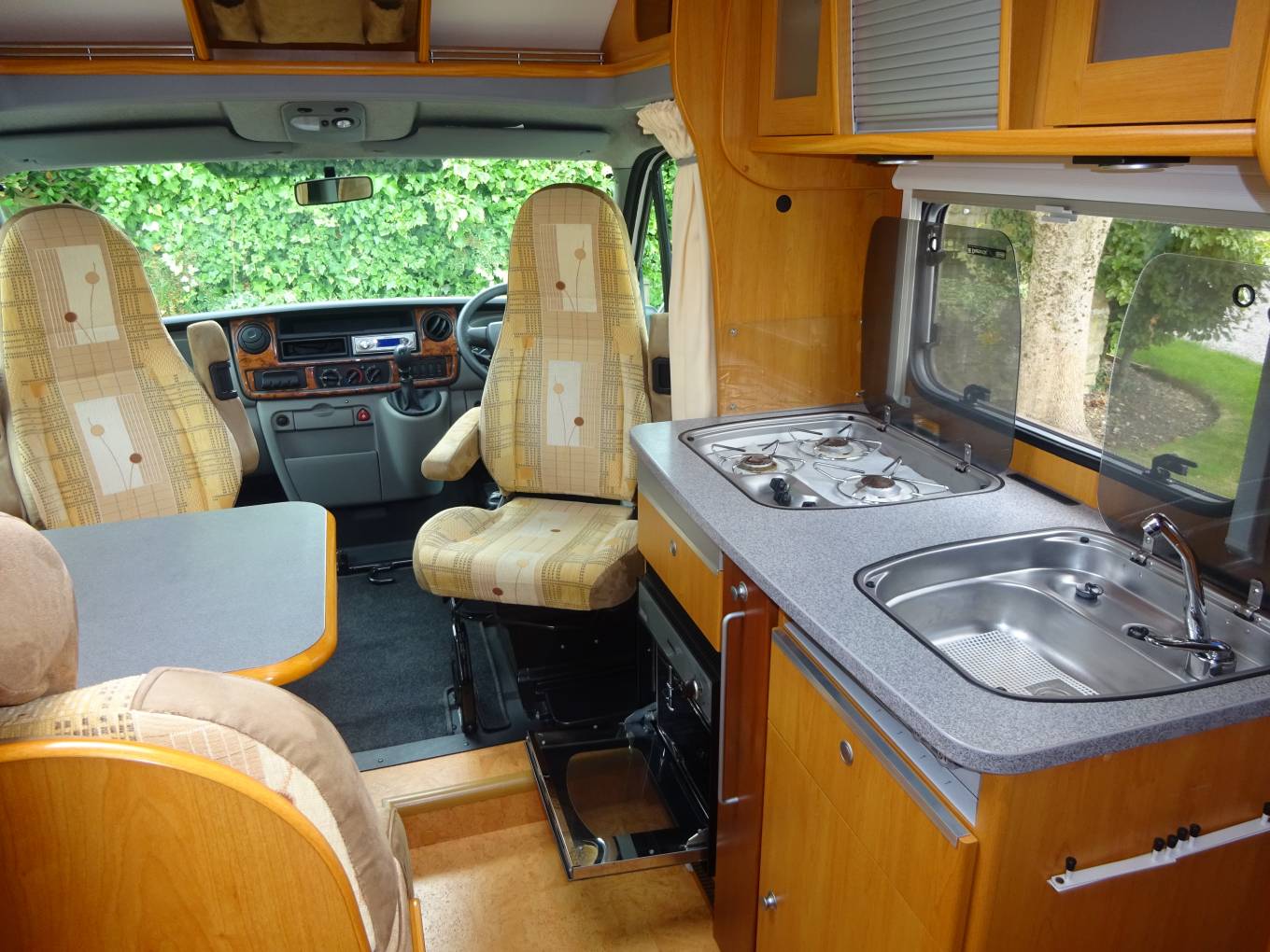To the front of the vehicle are two captain seats along with the Dinette Area and Kitchen with Oven, 3 Ring Gas Hob, Sink and Fridge With Separate Freezer. The Dinette Area Converts to the Additional Single Bed. All upholstery is original and in excellent condition. Behind the Dinette area is the washroom which consists of integrated shower, hand wash basin and Thetford cassette toilet. The Rear of the Motorhome you have 2 Single Beds Or you Can Convert them to one Large Double. There is plenty of storage throughout the vehicle.