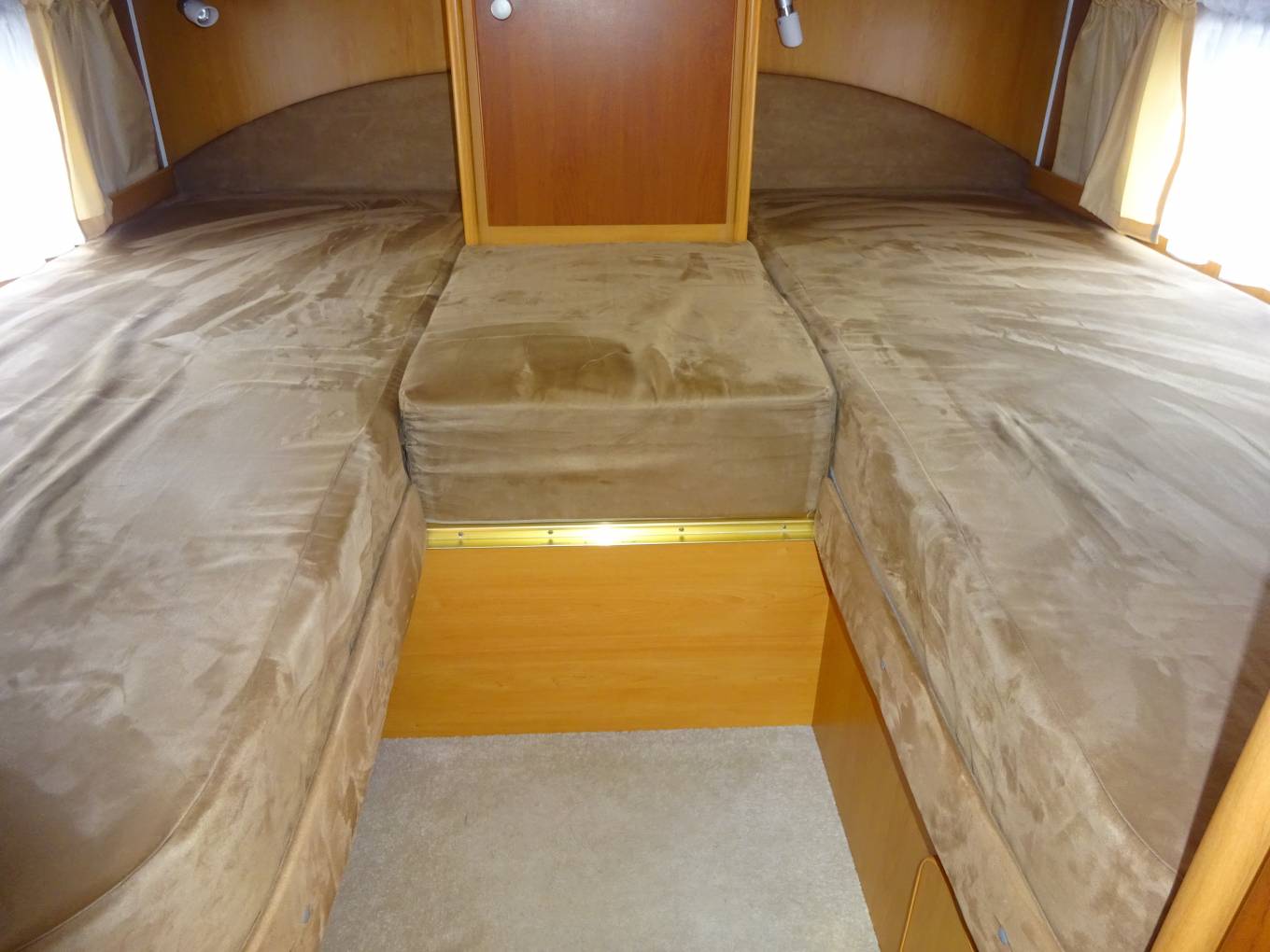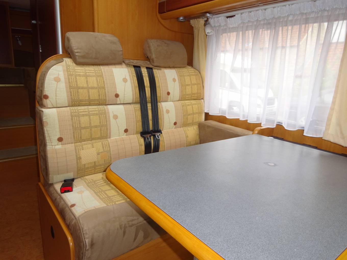 2006 Dethleffs Espirit RT 6614 Three Berth, Fixed Rear Bed with Four three-point seatbelts.