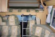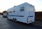 Unlike most other motorhomes, it is fitted out with a wet central heating system, easy to top up and maintain. Other extras include a self tracking satellite tv system.