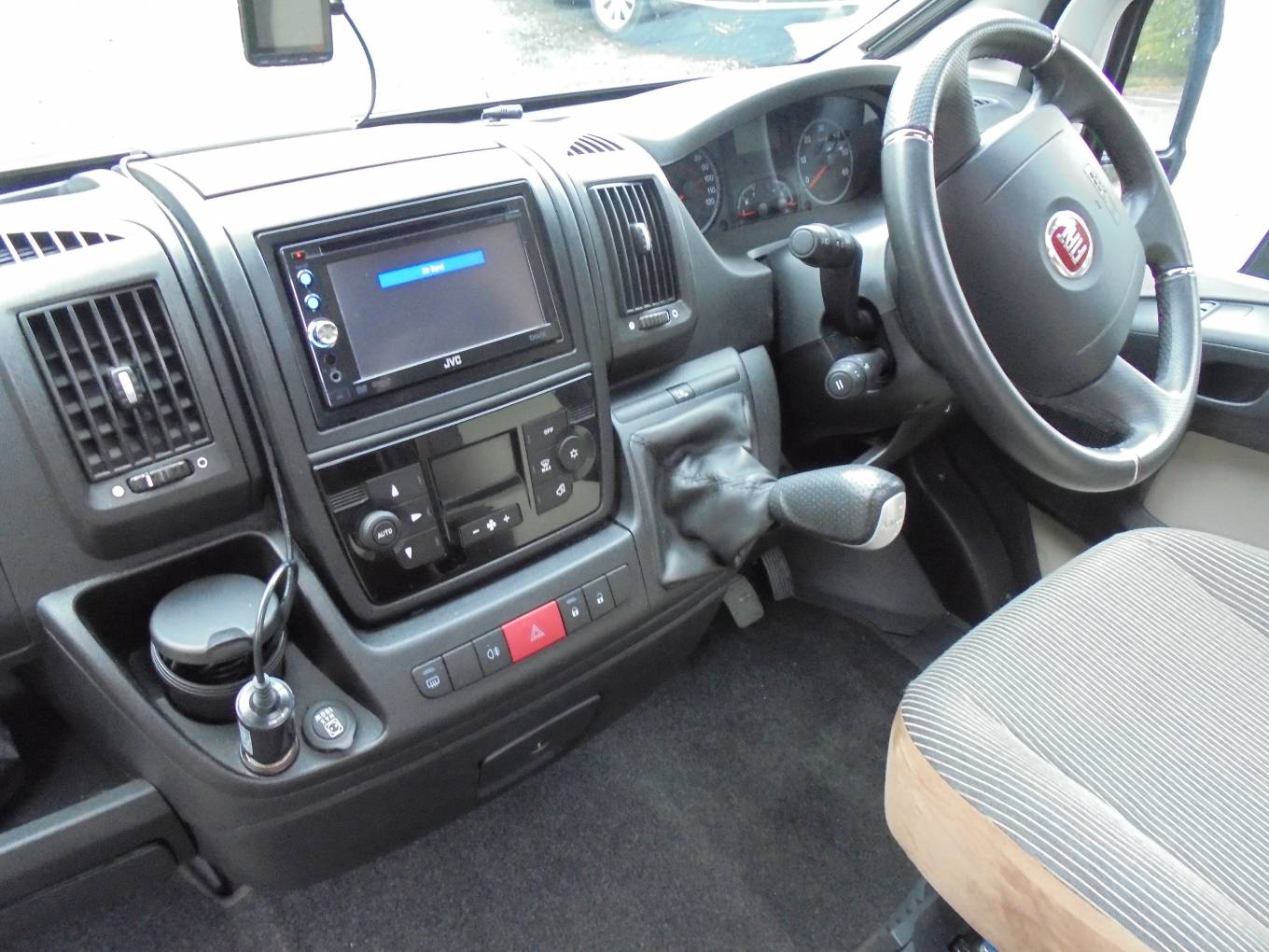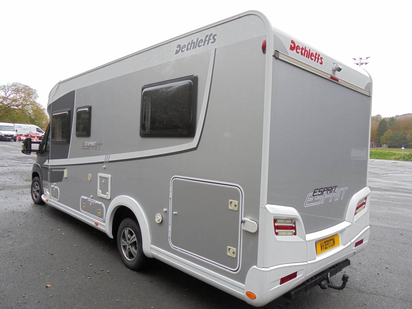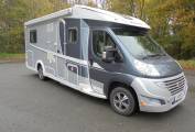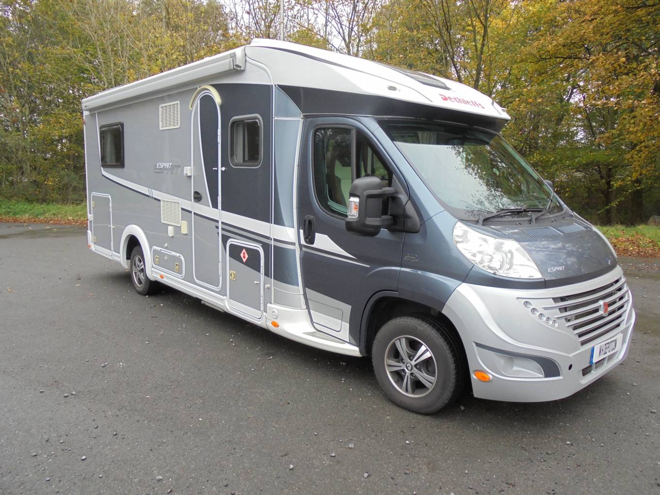 Here we have a luxury Dethleffs low profile motorhome, built to the usual high German standards, beautifully finished inside and out and comes with the added luxury of a powerful 3.0 litre engine with automatic gaer box. The outstanding feature of this motorhome is the end bedroom with en suite bathroom and large island bed, under which is a garage for storage. The centre of the motorhome has a well equipped kitchen with large fridge and seperate freezer and at the front is a light and airy lounge area with captain's seats and large roof lights. It comes with cab and habitation air con, 4 seat belts, cruise control, rear camera, sat TV, blown heating, 2 Allu Gas bottles with Autogas refill, bluetooth, tow bar and solar panel. This is a fully winterised vehicle with double floor and ski locker, it has good service history and MOT till May 2019. Available to view in Chorley, viewing is by appointment.