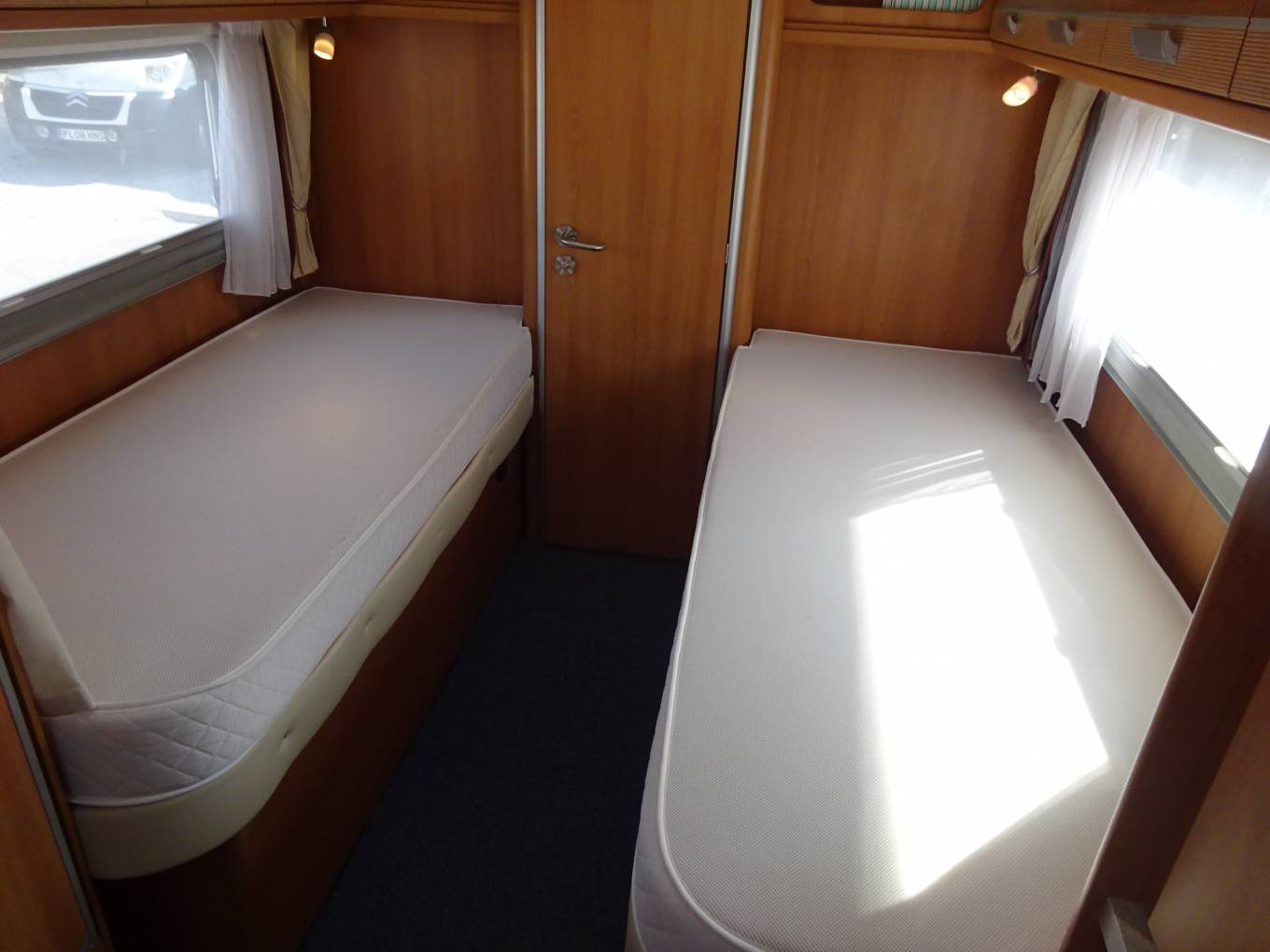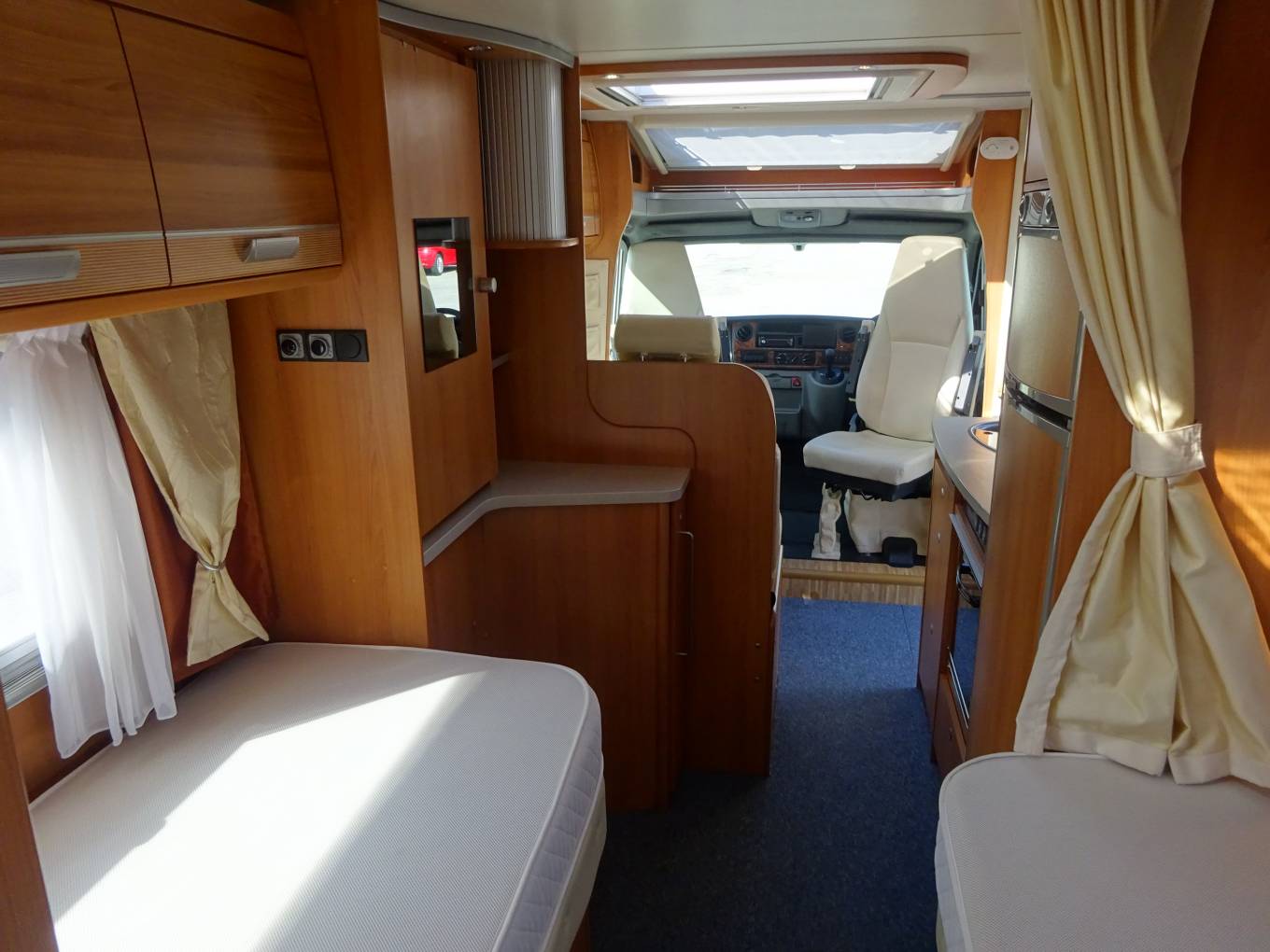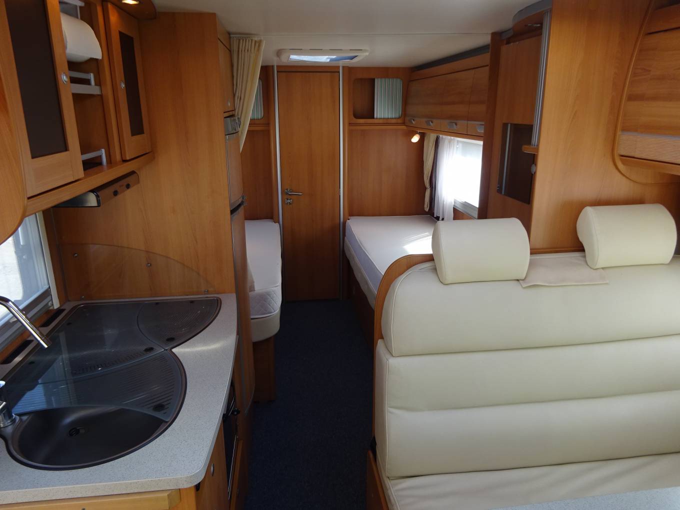 A great quality 2, 3 berth low line motorhome with fixed twin single beds, large rear washroom and built on a powerful Renault with automatic gearbox.