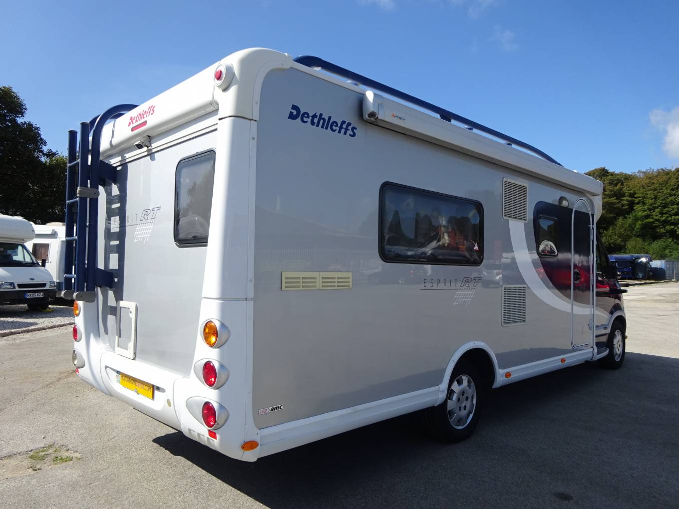 Automatic transmission, cab air con, large capacity fridge freezer, oven and grill, 4 belted travel seats, separate shower cubicle, roof rack and ladder, solar panel, wind out awning, external storage lockers and much more.