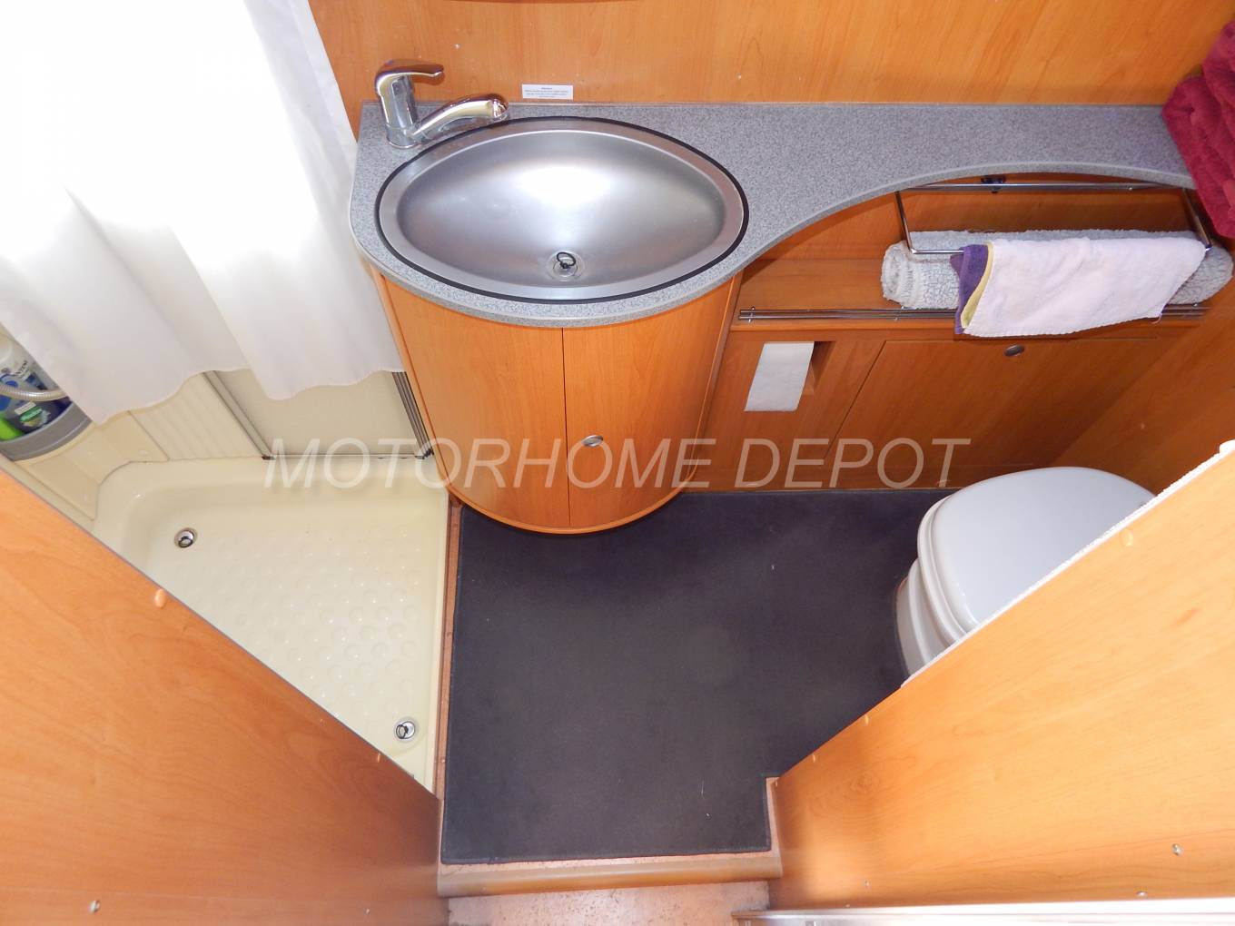 with shower handset, built-in washbasin with chrome mixer tap, a Thetford