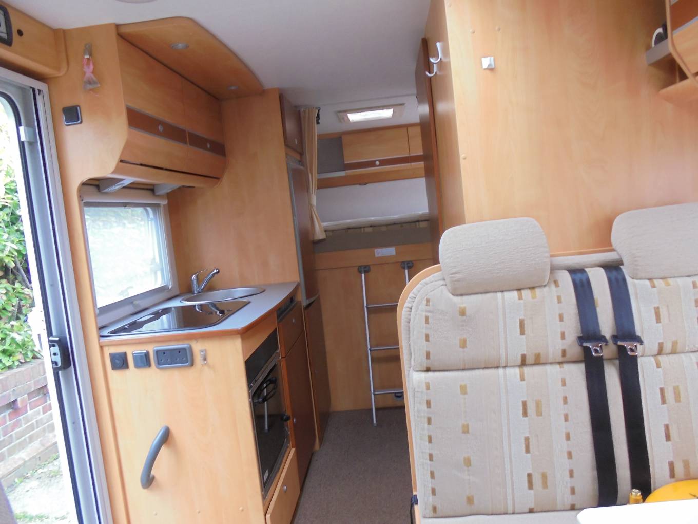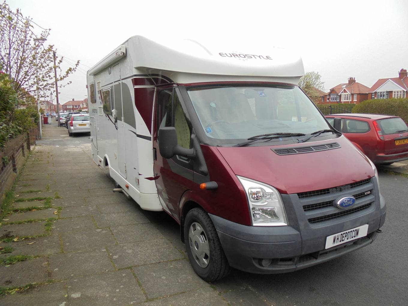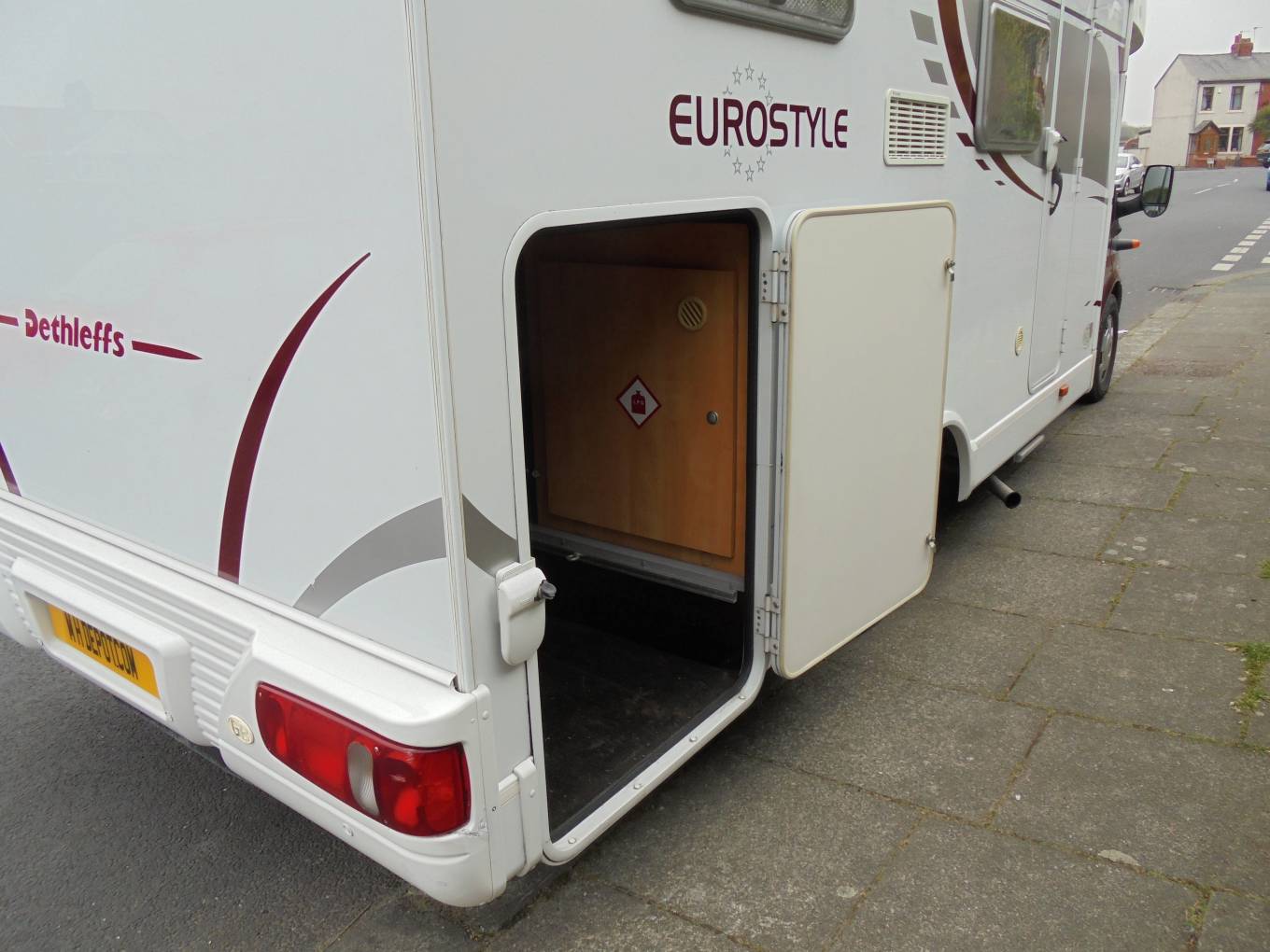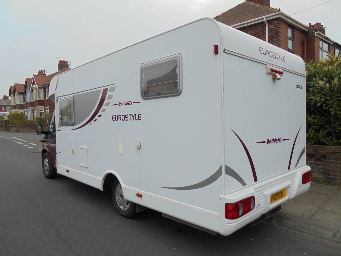 Dethleffs Eurostyle, 4 berth, low profile motorhome with fixed rear bed. Based on the Ford Transit with 2.2 engine, this motorhome has done 39,000 miles with good service history and is in nice clean condition inside and out. At the rear under the fixed bed is a large garage, the kitchen and bathroom are in the centre of the van and at the front is the lounge area which has 2 captains seats. It comes with 4 seat belts, cruise control, rear camera, blown heating, awning, hob and oven. It also has the convenience of a gas refill system by Autogas and is ready to go. This is an excellent example of a German built quality motorhome, great value. Call for more photos and information.