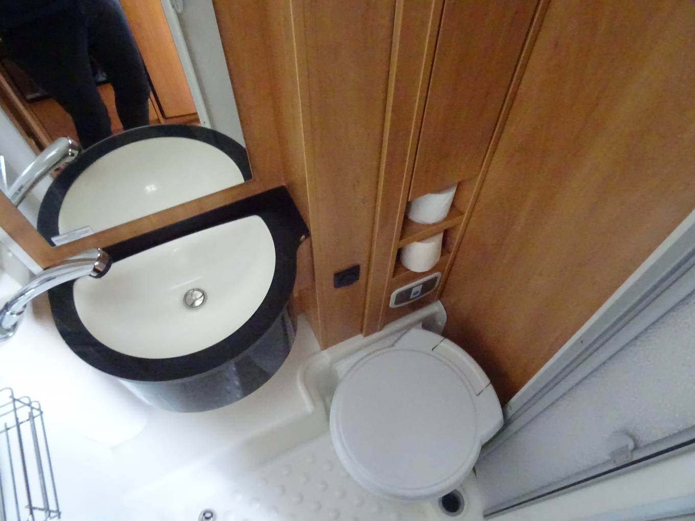 in which a shower screen folds out to prevent the cassette toilet and wall cupboards