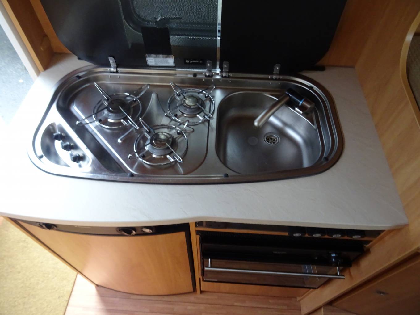 full oven, hob, sink, fridge with freezer compartment and storage space. At the end of this fabulous A-Class van are