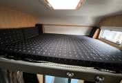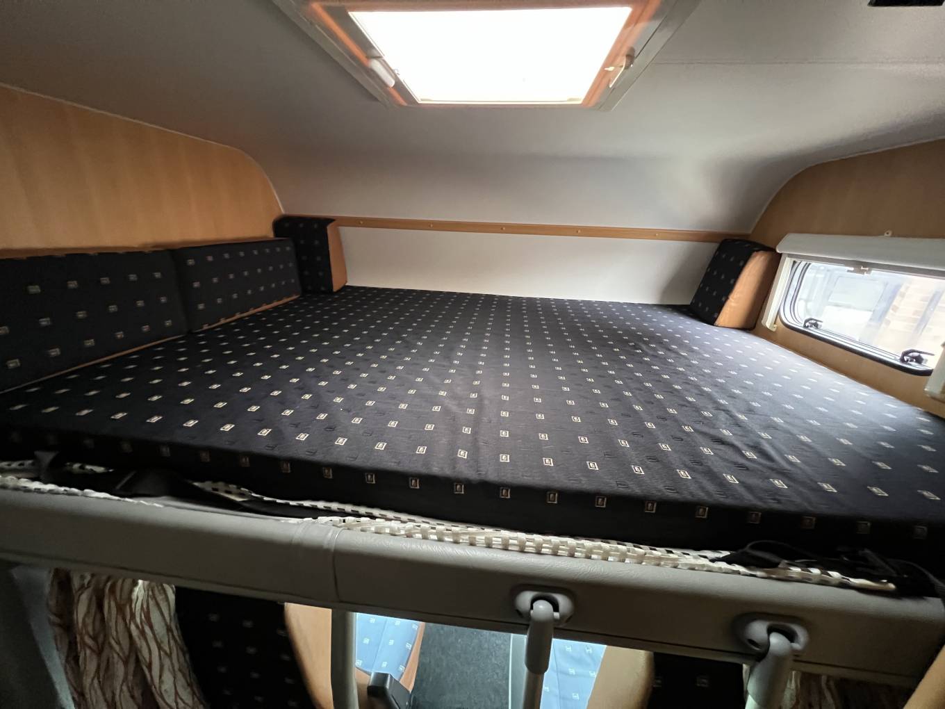 Above the driver’s cab is a huge fixed double bed with a safety net, privacy curtains, a window and lighting.