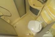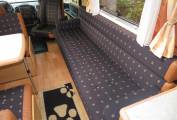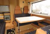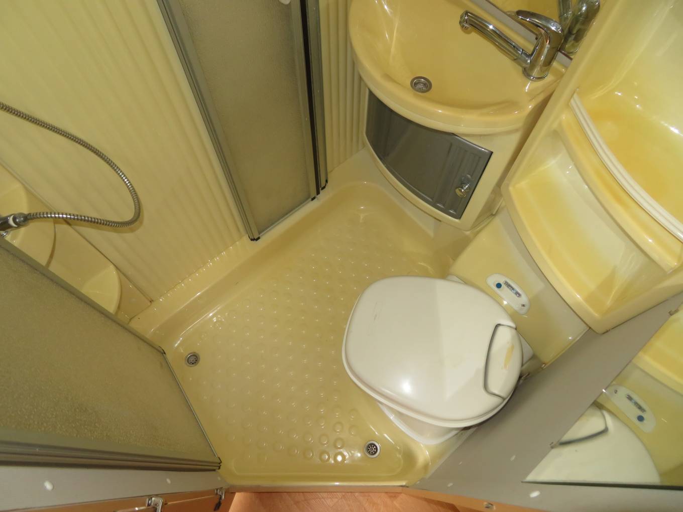 Sleeping in this motorhome is also extremely comfortable. Above the front seats is a large pull down double bed, this comes down nice a low making access much easier. The long sofa makes up a wonderful 6' 2" single, with the central dinette creating a further double. There is as a good sized washroom which includes Thetford flush cassette toilet, sink and wet room shower with curtain to keep you nice and fresh.