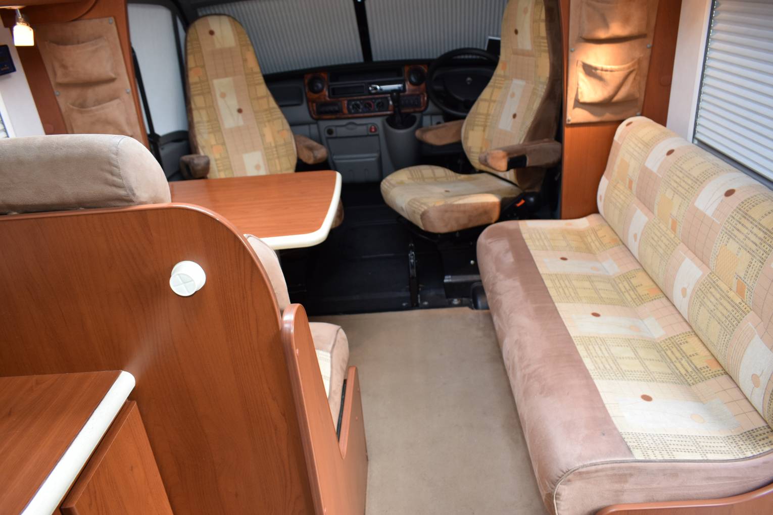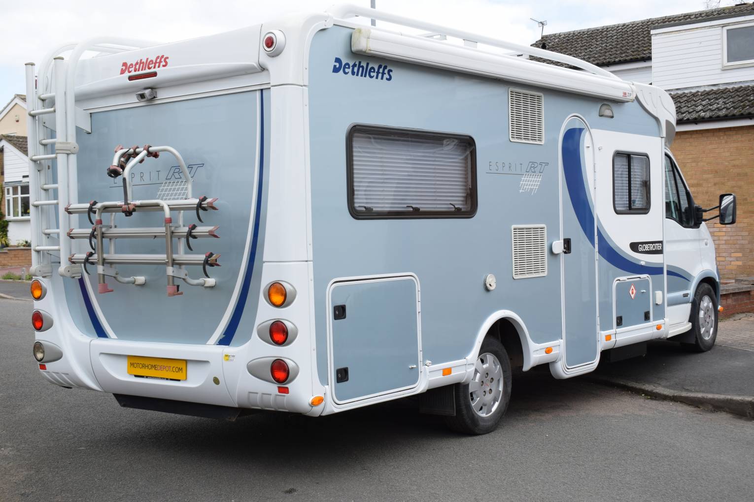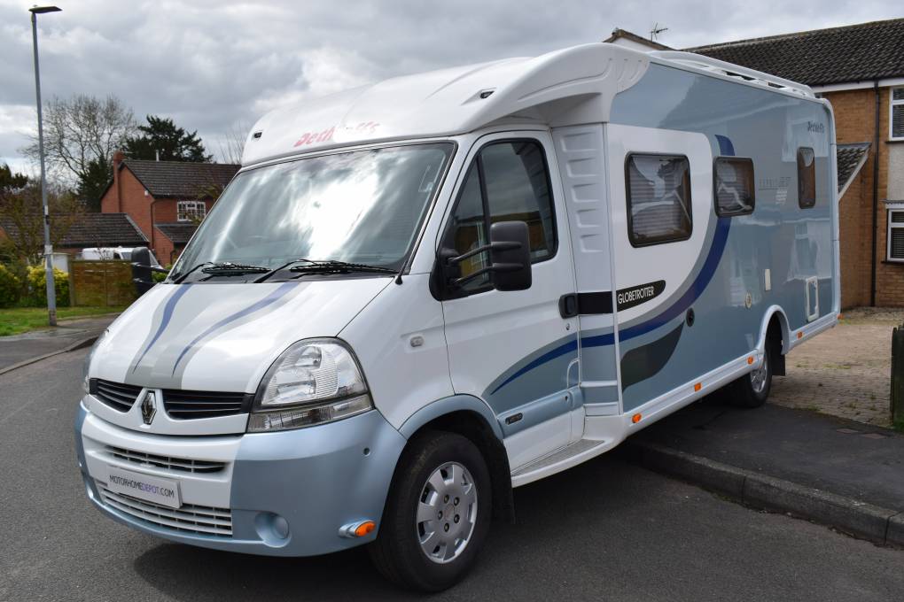 Dethleffs have been building motorhomes since 1983 and before that caravans since at least 1956 having a reputation for building high quality leisure vehicles. On entering this Esprit Globetrotter model via the caravan door, to you right is a two seater settee with another twin forward facing seat in front of you which together with the swilling cab seats makes up a spacious lounge area. The side mounted table also has an extension piece to accommodate dining for six. This area is where the second double bed is made up. Across the centre of the motorhome is the spacious, well equipped kitchen consisting of a three burner hob, a sink a combined oven and grill, a separate fridge and freezer plus an extractor fan over the hob. The fixed bed is in the corner behind the fridge and features a memory foam mattress plus reading lights. Beside the bed in the other corner is the bathroom with a separate shower, Thetford Toilet wash handbasin and plenty of cupboards. Outside a Fiamma Zip Awning has been fitted which comes complete with sides and a front panel, plus there is a Bike Rack, Barbecue Point and a Solar Panel. A gas bottle, electric lead and chocks are included in the price meaning threes motorhome is ready for you to camp in tonight. Plus we are giving you a Comprehensive 12 Months Warranty covering both mechanical and habitation areas on this motorhome.