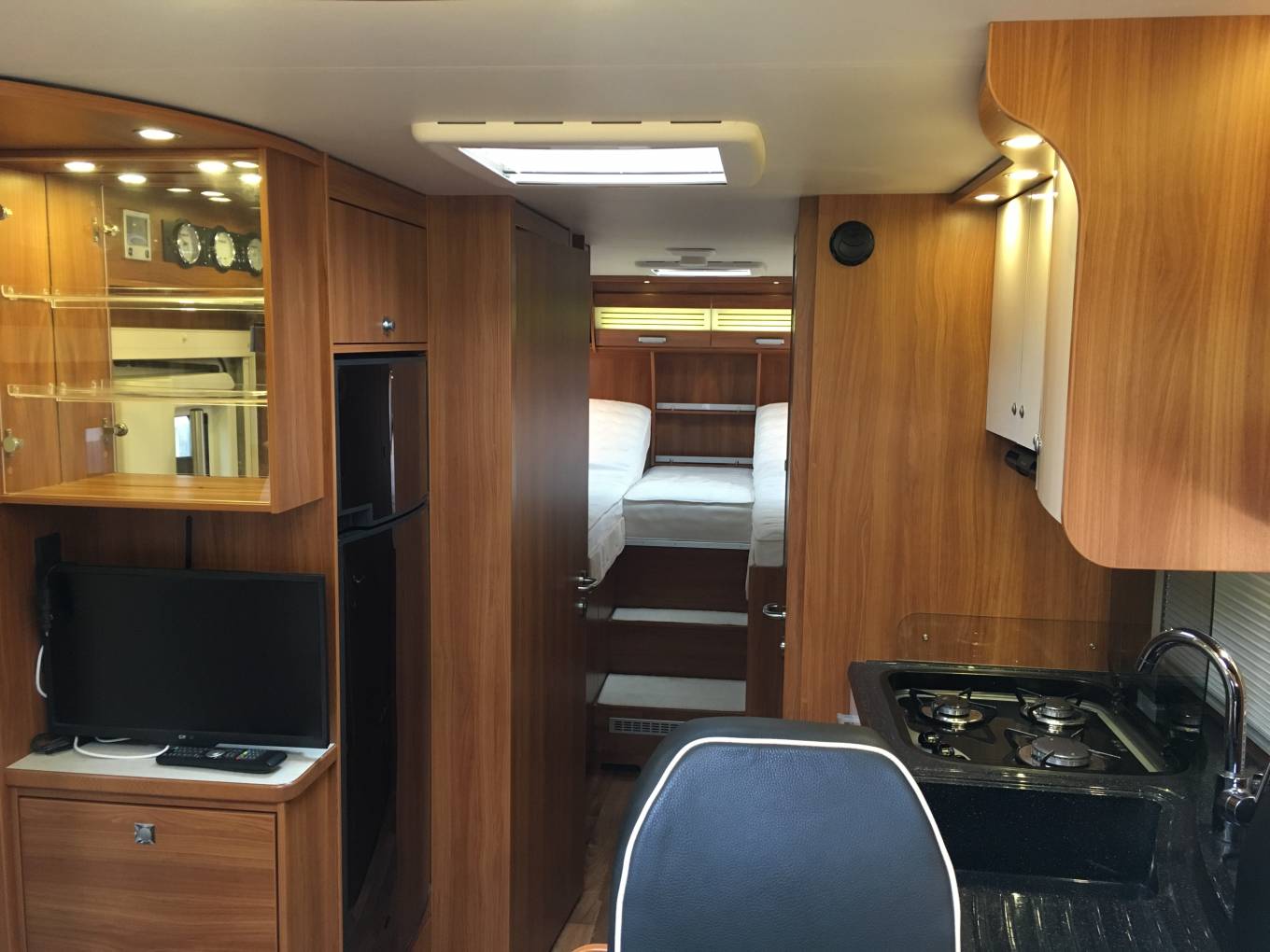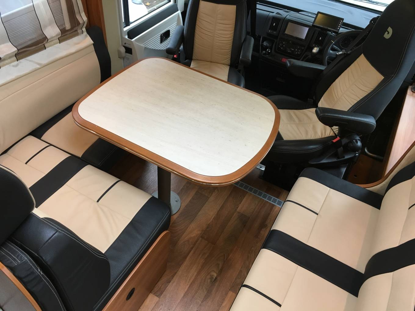 Habitation body and exterior equipment • Dethleffs GRP and Aluminium body construction • Truma Saphir Vario habitation air conditioning • Two solar panels • Two leisure batteries • 1500W Inverter • Passenger side cab entry door • TV self seeking satellite dish • 16 inch alloy wheels • Two bottle gas locker • Reversing camera • Thule Omnistor manual wind out awning • Awning light • Electric entry step • External BBQ point • Ski locker • External shower point• Access to garage upgrade with door on each side and rear corner steadies.