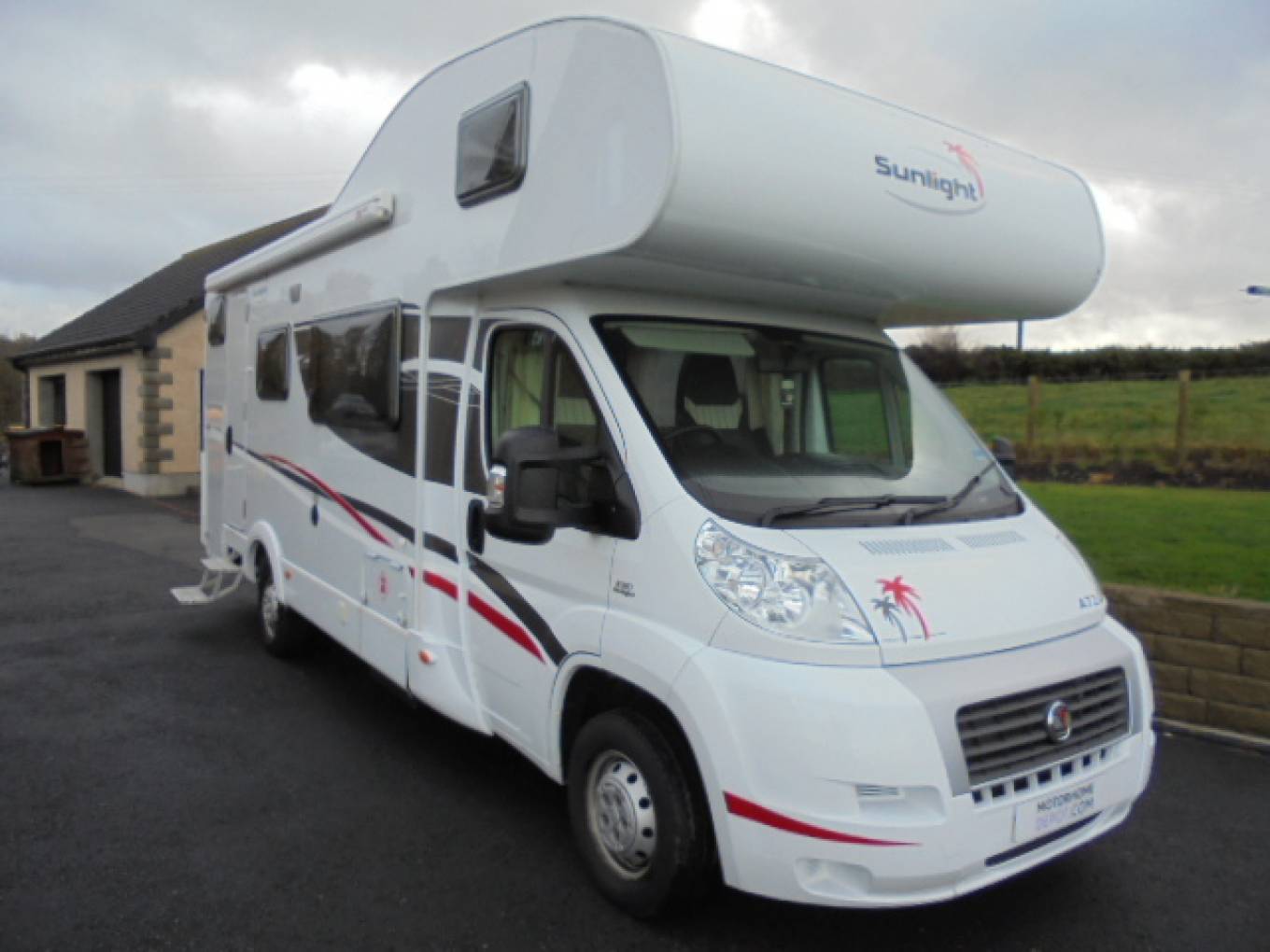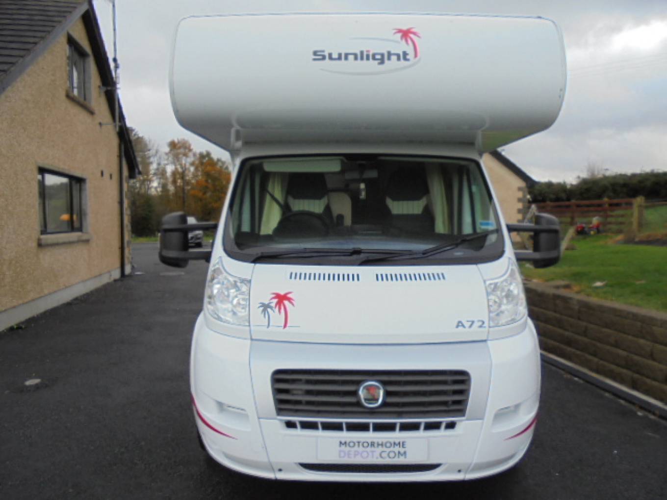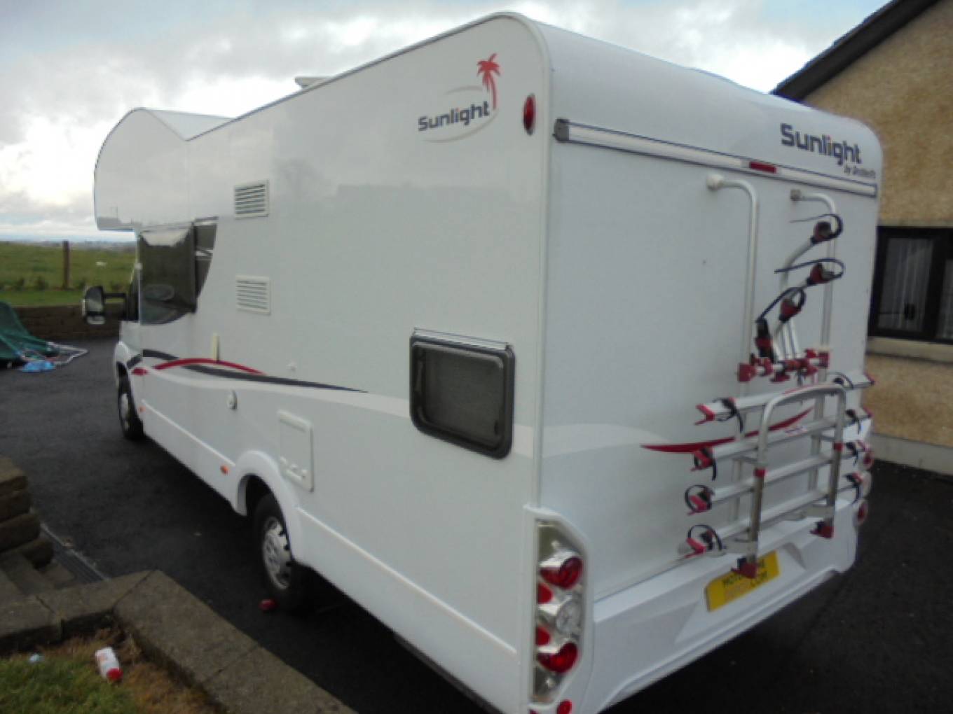 2014 Dethleffs Sunlight A72 6 Berth Motorhome For Sale. Based on the Fiat Ducato chassis with a 2300cc 130 bhp multijet diesel engine supported by a 6 speed manual transmission, max weight is 3500kg and measures approx 7.2m in length, 2.32m in width with a height of 3m. Mot'd until July 2019 mileage at present is 22205 miles. A great family motorhome which can sleep up to 7 people with 6 seat belts (4 x 3 point belts, 2 x lap belts). The cab area includes JVC Radio/CD player, air con, central locking and electric windows. There is a double and a single dinette area so 6 people can dine comfortably together.. This area converts to a double bed and a single bed with other sleeping arrangements provided by the large overcab bed and the rear fixed bunks. A compact washroom contains WHB, swivel cassette toilet and a separate shower cubicle.The side kitchen has sink, 3 burner gas hob and a 3 way fridge with freezer compartment. Plenty of storage throughout with overhead lockers, cupboards and a large wardrobe. Other extras include bike rack, wall mounted TV, electric step, aerial, wind out awning, rear garage, Truma Combi heating system and EHU. FINANCE AVAILABLE SUBJECT TO STATUS. PART EXCHANGE CONSIDERED. For more information, extra photographs and to arrange a viewing please call Mark on 07715220807. VIEWING IS STRICTLY BY APPOINTMENT ONLY. Motorhome situated in Co Armagh. Low Cost Delivery Available to the UK Mainland.
