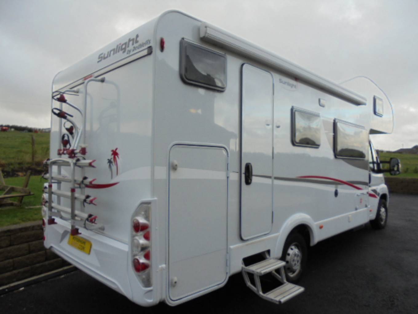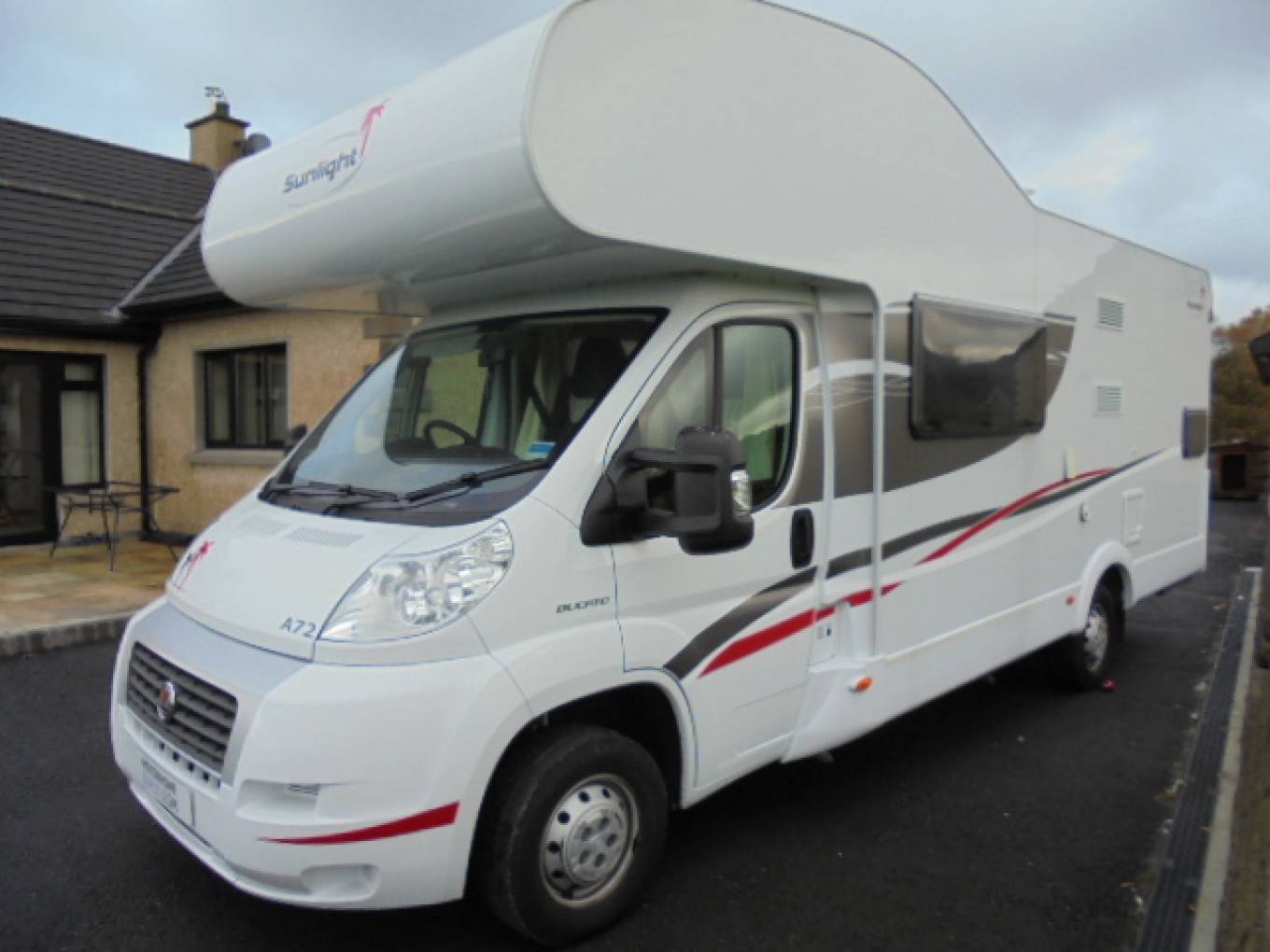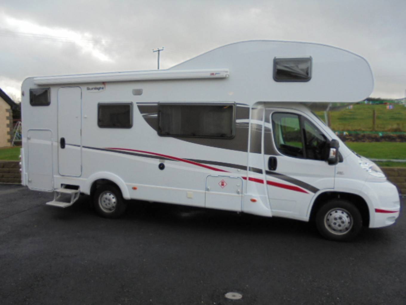 2014 Dethleffs Sunlight A72 6 Berth Motorhome For Sale. Based on the Fiat Ducato chassis with a 2300cc 130 bhp multijet diesel engine supported by a 6 speed manual transmission, max weight is 3500kg and measures approx 7.2m in length, 2.32m in width with a height of 3m. Mot'd until July 2019 mileage at present is 22205 miles. A great family motorhome which can sleep up to 7 people with 6 seat belts (4 x 3 point belts, 2 x lap belts). The cab area includes JVC Radio/CD player, air con, central locking and electric windows. There is a double and a single dinette area so 6 people can dine comfortably together.. This area converts to a double bed and a single bed with other sleeping arrangements provided by the large overcab bed and the rear fixed bunks. A compact washroom contains WHB, swivel cassette toilet and a separate shower cubicle.The side kitchen has sink, 3 burner gas hob and a 3 way fridge with freezer compartment. Plenty of storage throughout with overhead lockers, cupboards and a large wardrobe. Other extras include bike rack, wall mounted TV, electric step, aerial, wind out awning, rear garage, Truma Combi heating system and EHU. FINANCE AVAILABLE SUBJECT TO STATUS. PART EXCHANGE CONSIDERED. For more information, extra photographs and to arrange a viewing please call Mark on 07715220807. VIEWING IS STRICTLY BY APPOINTMENT ONLY. Motorhome situated in Co Armagh. Low Cost Delivery Available to the UK Mainland.