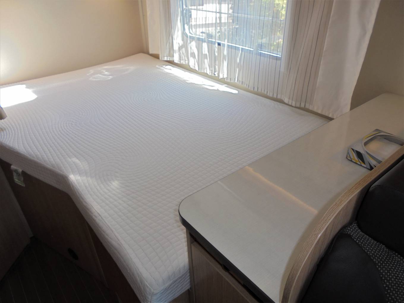 Living - Heating and hot water on gas or electric provided by a Truma system - Standalone dining table - Electric hook up - LED lighting - Window blinds and curtains throughout - Lots of internal and external storage space – Electric Step – Awning - Double Cycle rack.