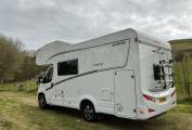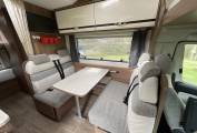 DETHLEFFS TREND A5887 6 BERTH 6 BELTED SEATS * Price reduced * Ideal family motorhome with garage, driven on a standard car licence and only 5000 miles from new. Superb condition inside and out, this high quality, winterised 6 berth motorhome comes equipped with 6 seat belts, twin rear bunks with useful garage below (can be made larger by folding up the lower bunk) generous over cab bed and further sleeping for 2 on the converted dinette. The kitchen is well equipped with sink, large 3 way fridge freezer, 3 burner gas hob and gas oven with integrated grill. There is a nice washroom complete with shower, basin, cassette toilet, mirrors and storage, a comfortable dinette and generous passenger seating area which all go to make this an ideal family cruiser. The cab is fitted with cruise control, air conditioning, two swivel seats, a speed limiter, hill start assist, traction control, a CD radio and reversing camera. Externally there are 2 access doors to the garage, a 4 meter Fiamma awning, 130 watt solar panel, a 3 bike rack, a foldable hand rail and an electric entry step. One side of the garage is currently fitted out to carry a mobility scooter (available separately if required, please ask for details) Lovely vehicle throughout is as new condition, available with 12 months warranty, any inspection welcome. For further details please contact Simon on 01432 488 996. Part exchange and finance a pleasure.
