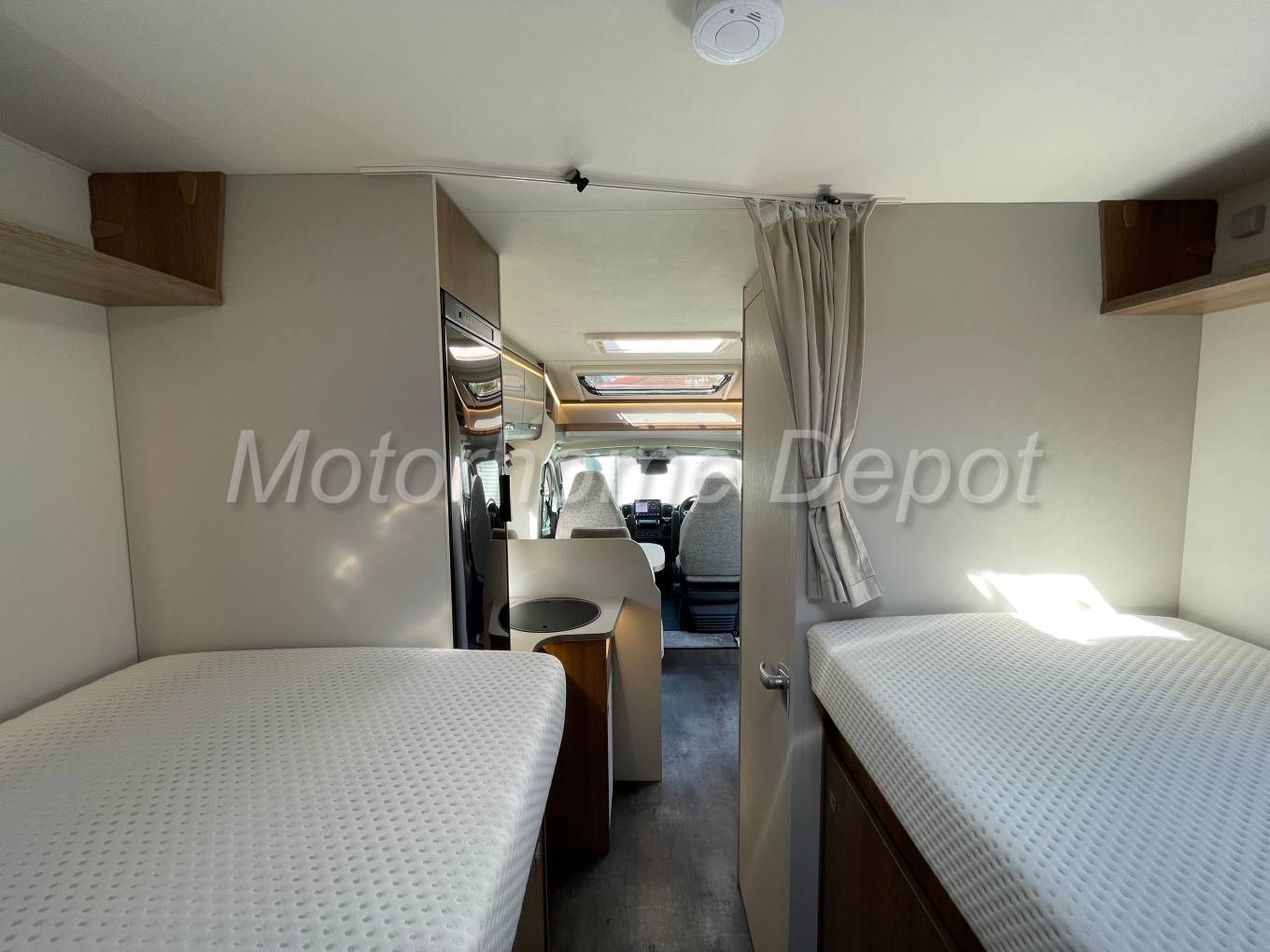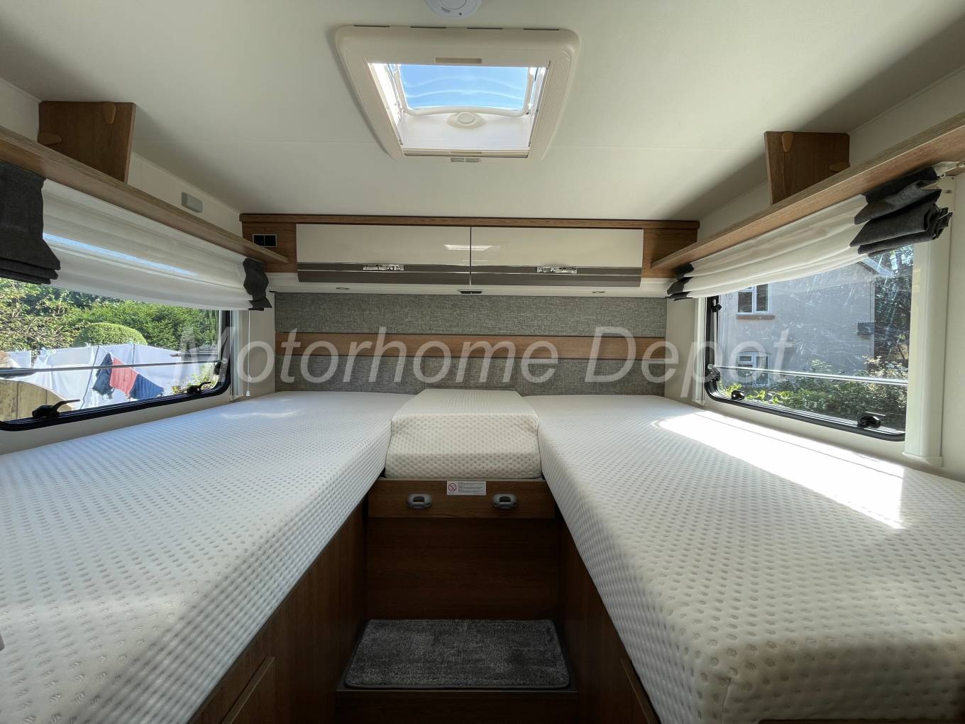 - LAYOUT – FRONT DINETTE MAKES SINGLE BED USING FRONT SEAT ROTATED – MID KITCHEN & BATHROOM - REAR TWIN SINGLES OVER GARAGE