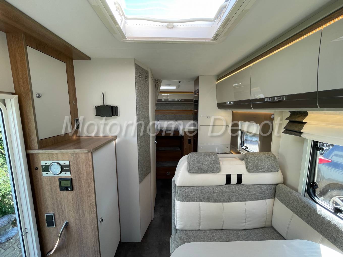 Heating and Hot Water is supplied by a Truma Gas & Electric powered combination boiler.