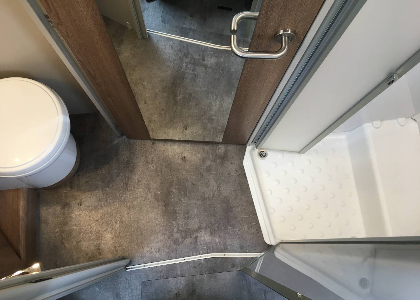 mixer tap • Mirror • Medicine cabinet • Thetford swivel cassette toilet with electric