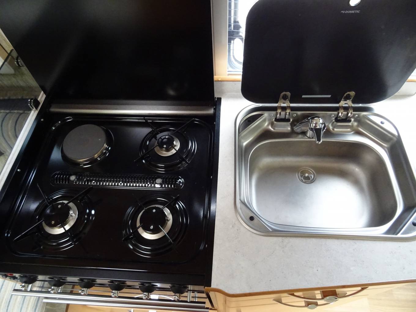 both hot and cold running water, oven with grill and hob. Opposite, there is the