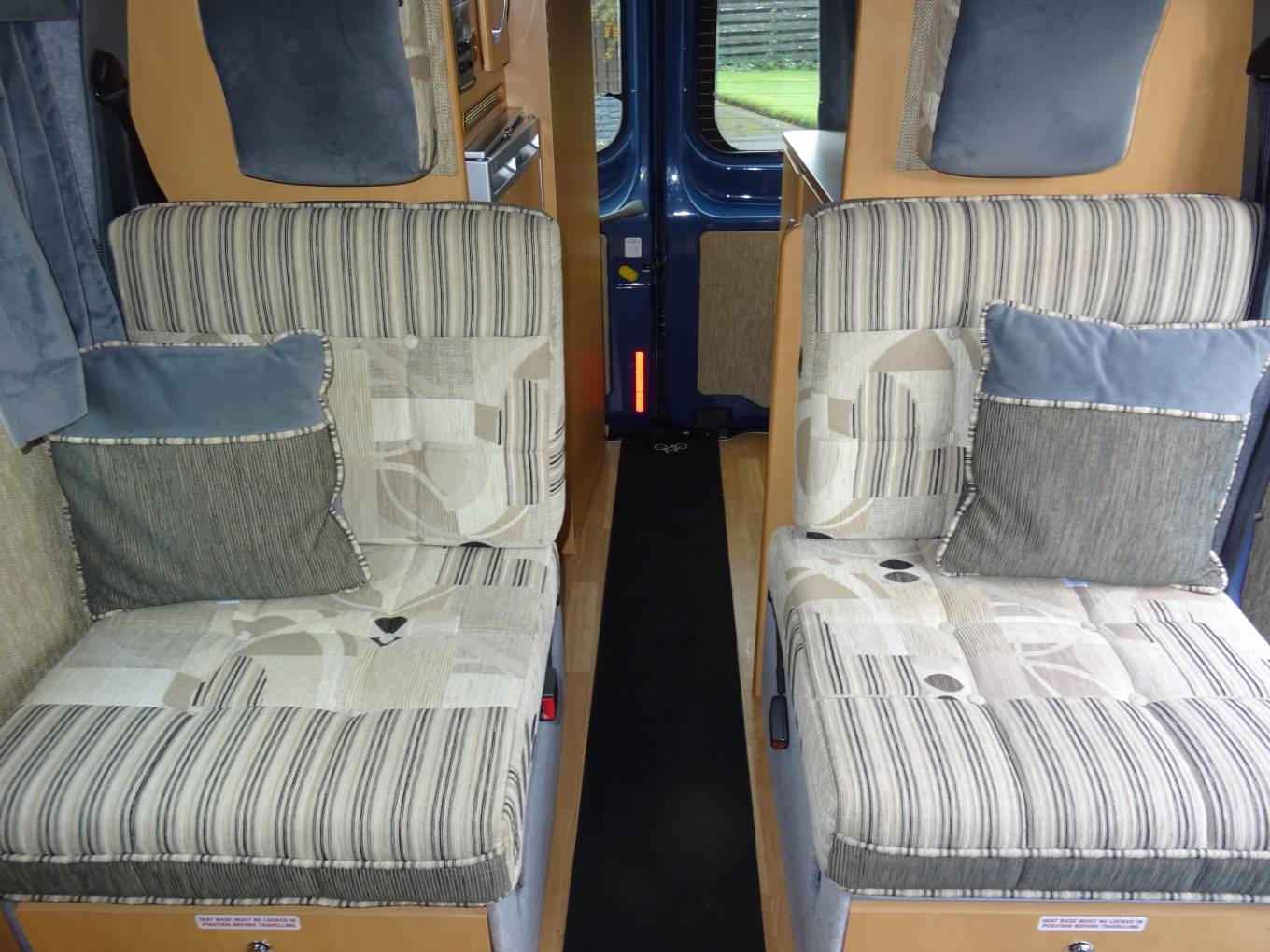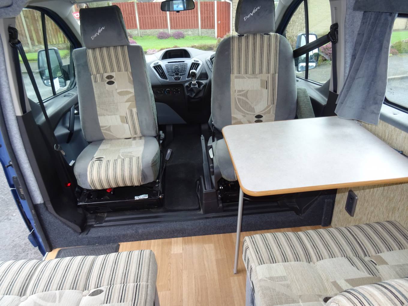 Here at Motorhome Depot, we are delighted to be able to offer this fantastic and practical 2013 edition of a Devon Firefly for sale. This 2 berth, 4 belt, pop top campervan is based on the popular Ford Transit chassis and boasts the 2.2 litre Diesel engine with the 6 speed manual gearbox and really is a pleasure to drive. Although a compact camper, the current owner is also throwing in their Vango drive away air awning that can pretty much double your space when on site. Starting at the rear of this pop top we have a 2 burner gas hob, handwash basin and a 12 volt fridge with ice box. Opposite this is the desirable cassette style toilet so no member of the family will be caught short at night! Into the lounge area, we have 2 forward facing seats that also include 3 point travelling belts for any potential guests. The drivers and passengers seats will also swivel to provide great seating for 4 people. These seats will also convert into 2 single beds for the sleeping arrangements. At the front end there is great extras such as Bluetooth hands free, heated drivers seat and air-conditioning for those really hot days. If you would like any additional information or pictures, please call our friendly sales team to assist you further.