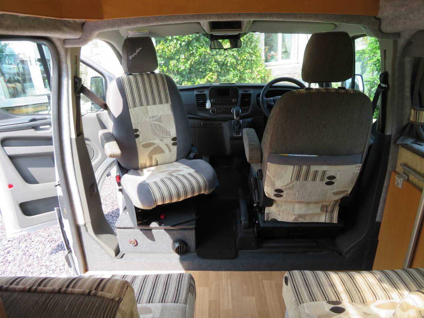 Motorhome Depot present this stunning Devon Firefly Automatic Campervan,The popular Devon Firefly is based on Fords 2018 euro 6 Ford Custom Transit 280 Trend with 130 PS engine. It follows the very popular rear kitchen layout with four travelling seats so it can be used as an everyday car. The seats fold down to create two comfortable single beds, in the back is a fully equipped kitchen, with our unique, spacious washroom with folding privacy screen and cassette toilet. The Firefly is extremely well equipped with metallic paintwork, colour coded bumpers, cab air conditioning, driver and passenger airbags, cruise control, heated front seats, parking sensors together with rear view camera, heated windscreen, automatic lights & wipers all come as standard plus this one has the following options fitted. Oven/Grill, Webasto Diesel Heater,3-way fridge,Electric Step.