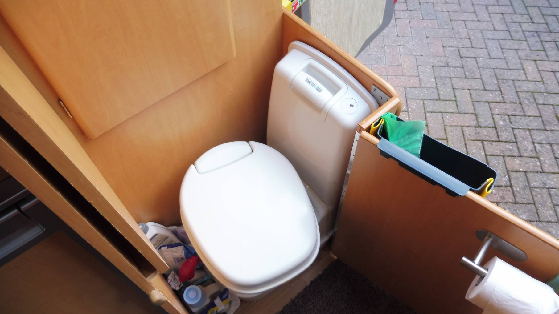 At the very back of the camper there is a cassette toilet enclosed in a cupboard whilst not in use.