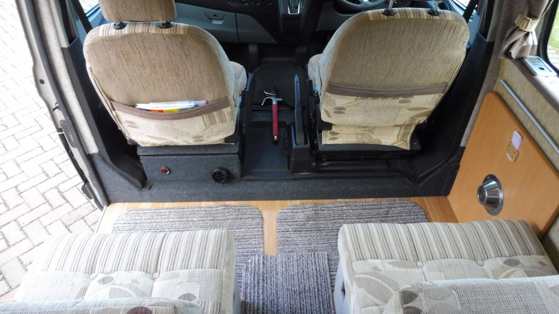 The Webasto diesel heater offers year-round camping, or just a nice cosy place to sit if you go out on a chilly day. Storage is no problem with overhead lockers, a hanging cupboard and room above the cab to accommodate all those essential items.