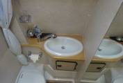 The nearside is home to the washroom, and storage units and wardrobe.