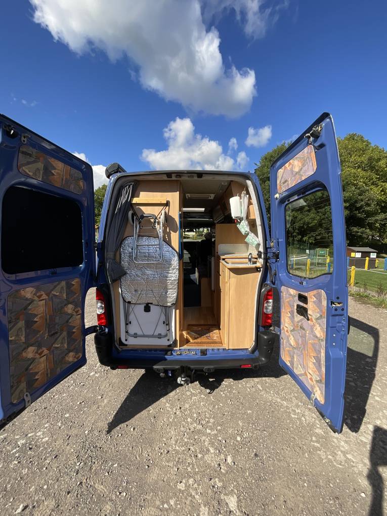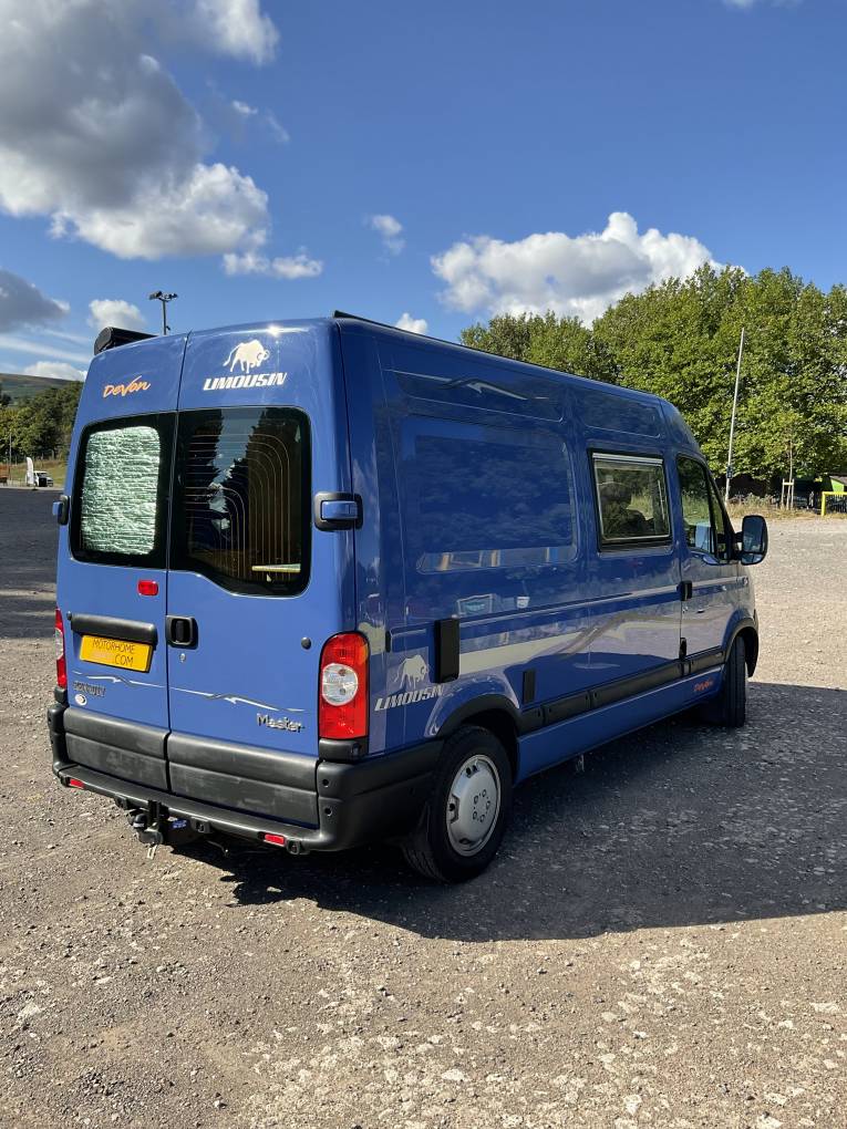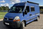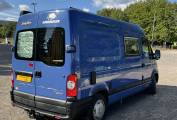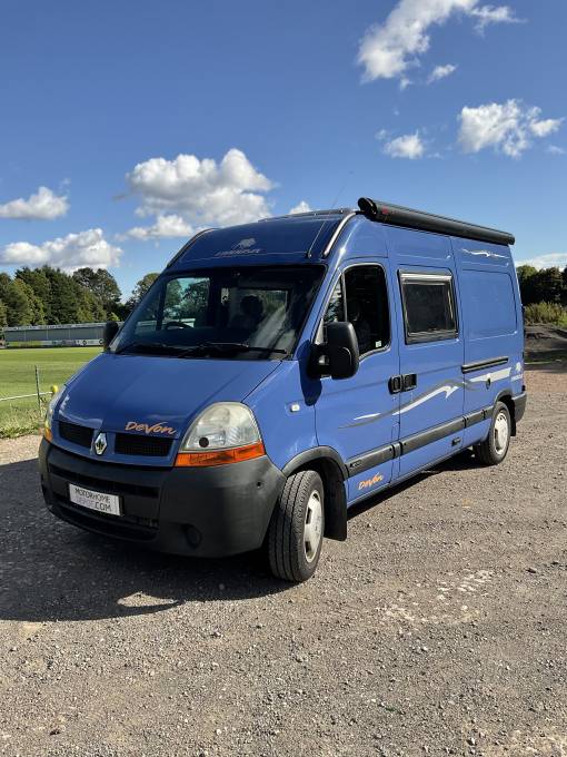 The motorhome is a 2/3 berth, RHD, semi-auto gearbox, based on a Renault Master, 2.5TD, Hi-Top Camper (2006) with PAS, tow bar, remote central locking. Colour: Blue, Cab air-con, cruise control, swivel seats, airbags, over-cabin storage, electric windows and mirrors, radio/CD player, Wind out awning and a drive away awning.
