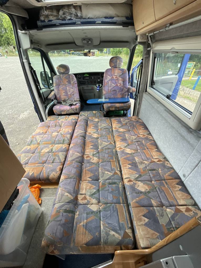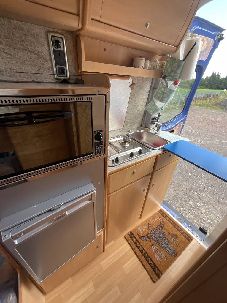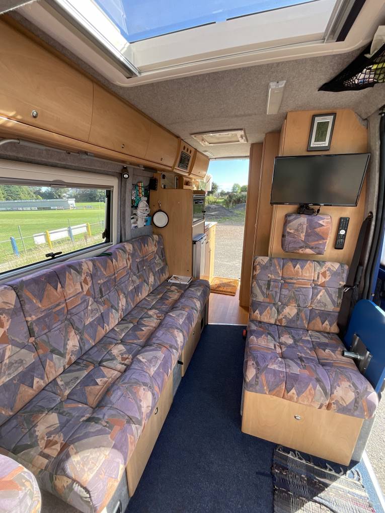 Central area with one long bench seat and 1 single forward facing seat with 3 point belt, Note: The seating makes up 2 single beds, or one large double. Rear kitchen with a 2 burner gas hob and grill, fridge with ice box, sink and numerous storage cabinets. Rear washroom with a shower, sink, wc, cabinets and a long mirror. Window screens and blinds, lino flooring, ample storage, wardrobe, Webasto heating, spot and ceiling lights, 240/12V, Power Management System, Length:5.5m, Width:2.1m/2.35m, Height:2.6m. GVW:3500kg. The van has just had 4 new all season Mitchelin tyres fitted ready for the new season.