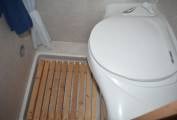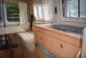 converts to twin single beds. There is a central kitchen with a hob, stainless steel sink & fridge with icebox. The