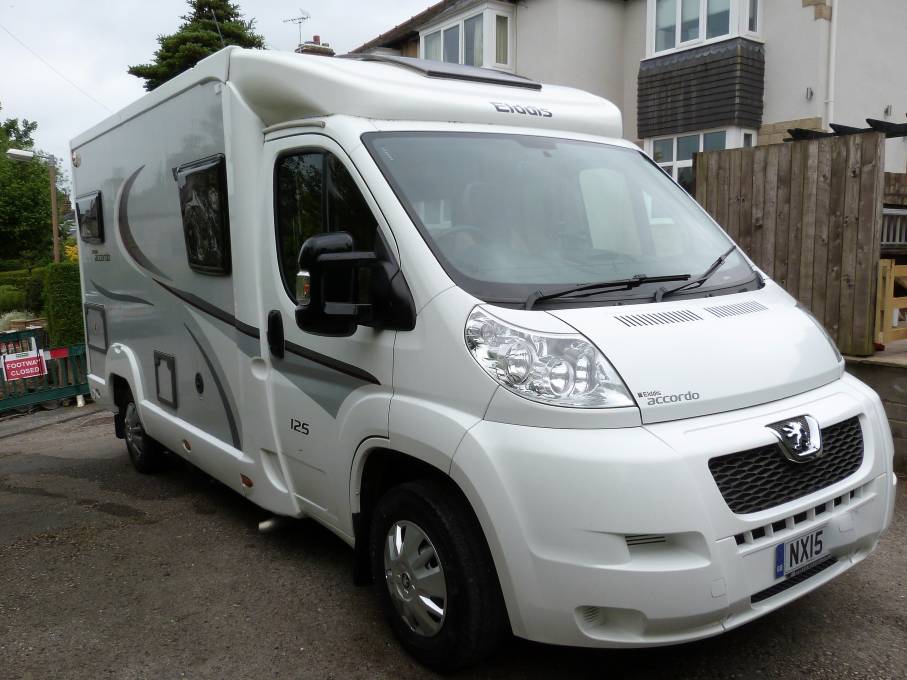 Please call with any questions on 01423 609985. This is a lovely Elddis Accordo 125, 3 berth coachbuilt motorhome and is in very good condition. It has every feature needed to enjoy a full motorhome experience and being 6 metres in length fits into any car parking space, plus ferries are priced the same as cars. This is a 3 berth, rear double bed campervan, with full wild camping capability given by the solar panel, a fridge with freezer, Truma heating system. At the rear is a double bed, with vast amount of storage space underneath. Removing the upholstery, the frame can be secured fastened to create a rear garage if required. The entry to the rear is similar to that of a car. Throughout there is plenty of storage, and the upholstery is in excellent condition. The washroom has a toilet, sink and shower attachment. In the galley kitchen there is a Thetford oven and grill, with oven, grill and 3 gas burner hob, 3 -way fridge with freezer. microwave plus additional worktop space is created next to the habitation sliding door, with a pop-up worktop. Opposite are the travelling seats, with 2 full seatbelts and large window next to it, this makes up into an occasional bed. Rooflights contribute additionally to the light and airy feel inside. Upfront this exceptional campervan benefits from driver and passenger swivel seats, cab air conditioning, sunroof and 6 speed manual gearbox. This motorhome is built on Peugeot Boxer chassis, 18,100 miles, has a 2198 cc engine, is 3300 kg, benefits from FSH and will come with new service and 12 month MOT. It should be seen at the earliest opportunity and can be viewed near to Ilkley, Part exchanges are welcomed on this vehicle, for further information please call us on 01423 609985 quoting reference number 154311